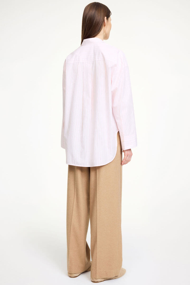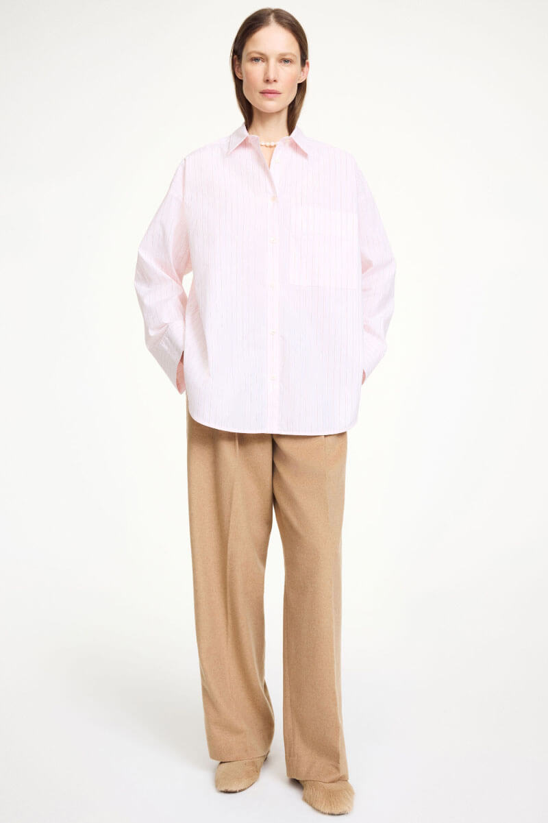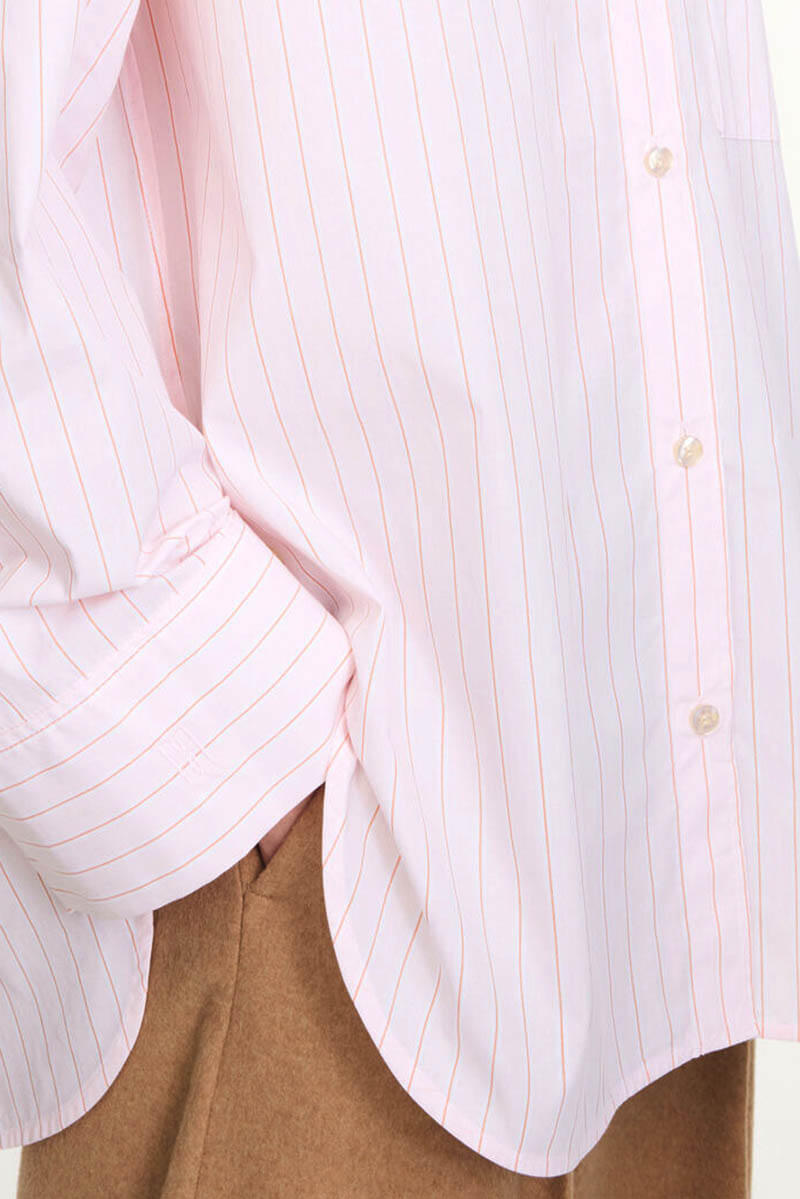 Striped shirt in shades of pink that captures the feeling of casual elegance. In airy cotton fabric and a relaxed silhouette, it looks just as natural with jeans and sneakers as it does tucked into suit trousers.Shirt in organic cotton with a loose fit, chest pocket, collar and embroidered monogram logo at the cuff from By Malene Birger.