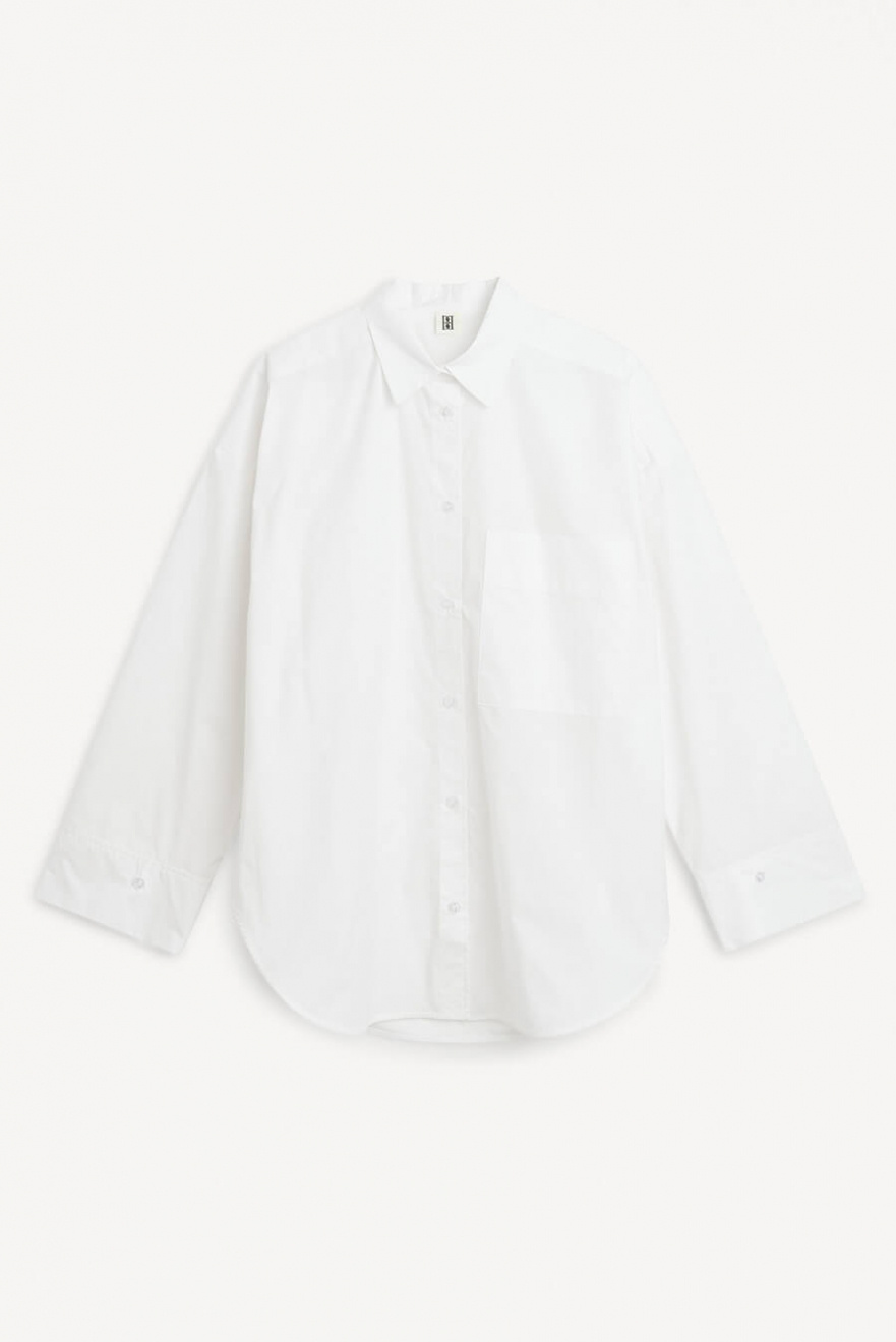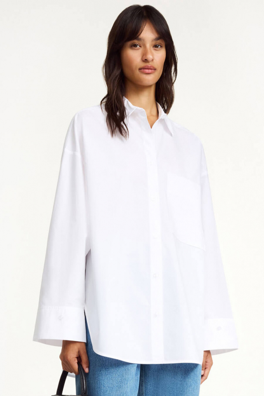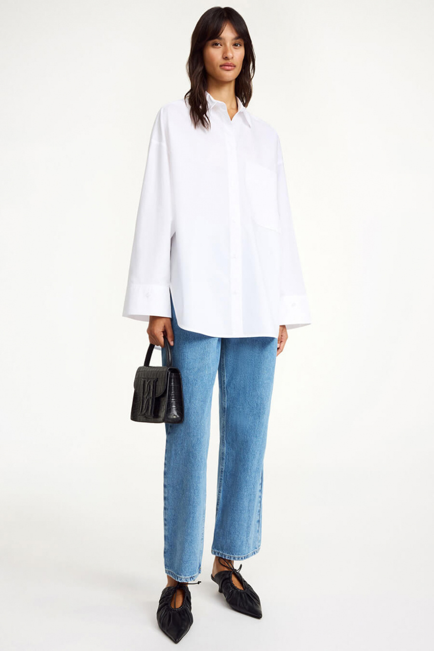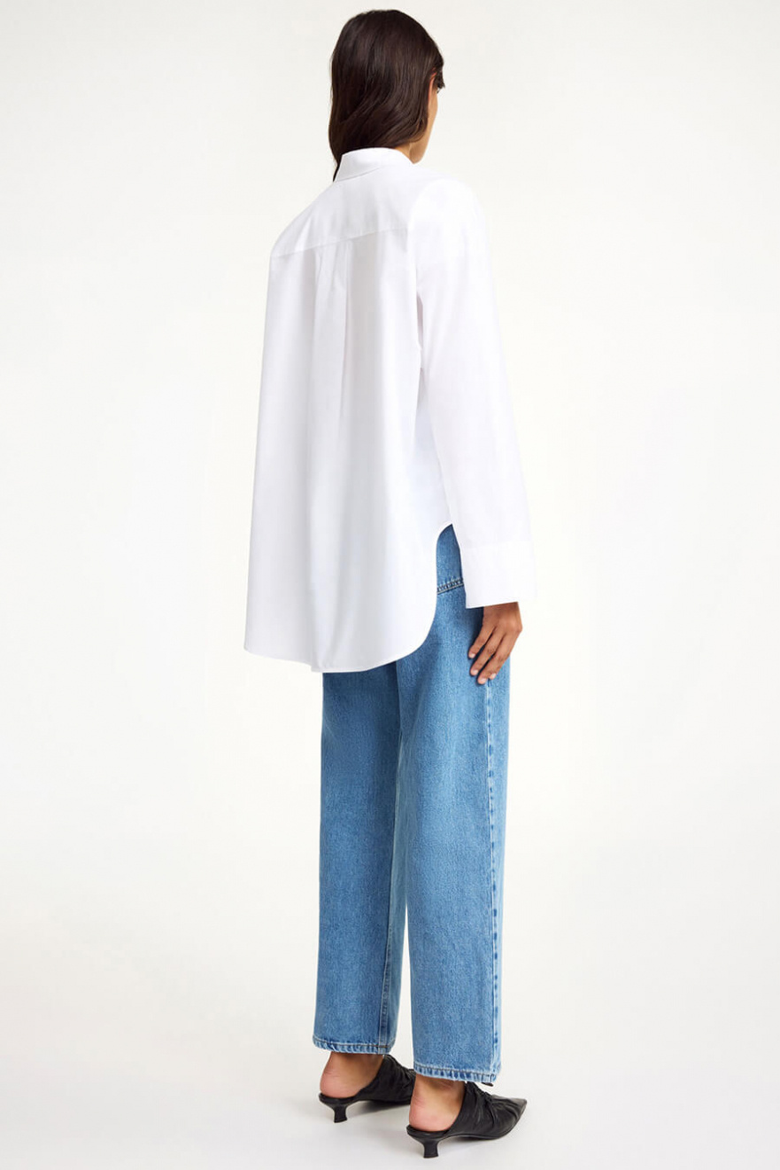 Shirt in organic cotton with loose fit, chest pocket and collar from By Malene Birger.- Oversize fit, fits true to size
