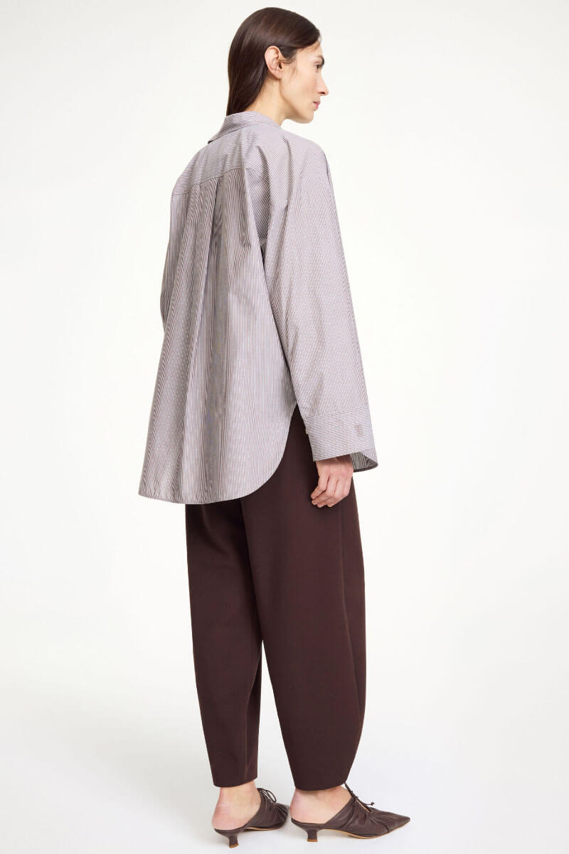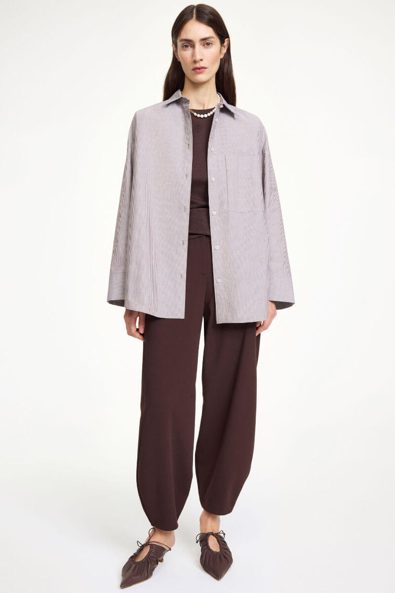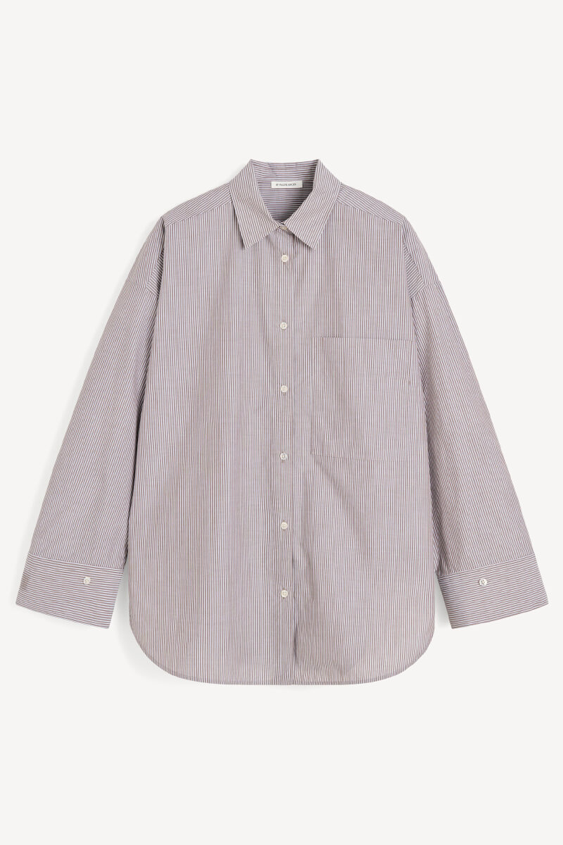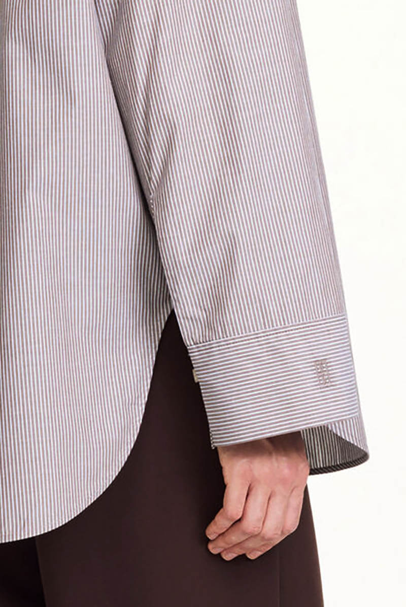 A brown and white striped shirt in soft cotton with a generous fit – timeless with a twist. Stripes never get boring when the cut feels new.Shirt in organic cotton with a loose fit, chest pocket, collar and embroidered monogram logo at the cuff from By Malene Birger.