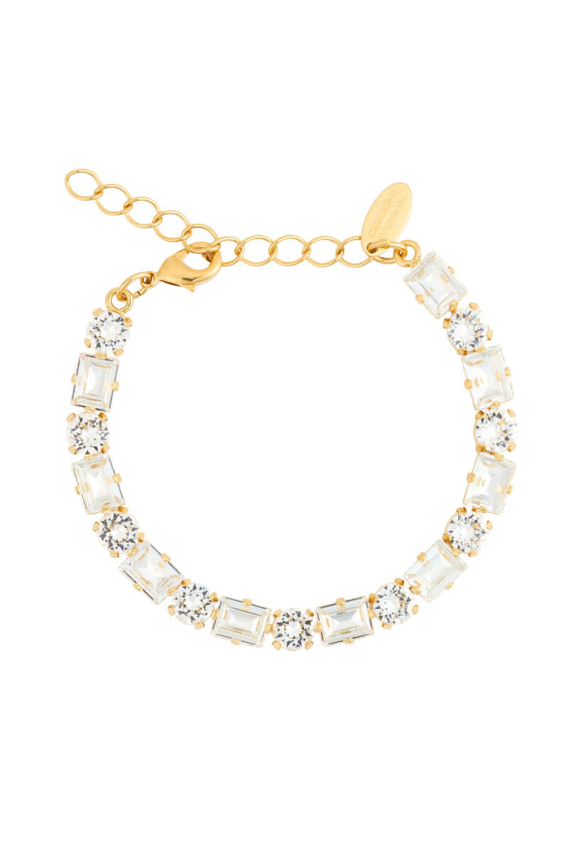 An elegant bracelet crafted from brass with 18K gold plating, adorned with shimmering crystals.
