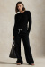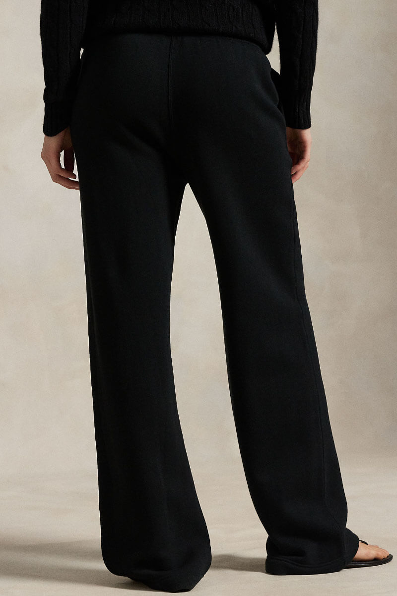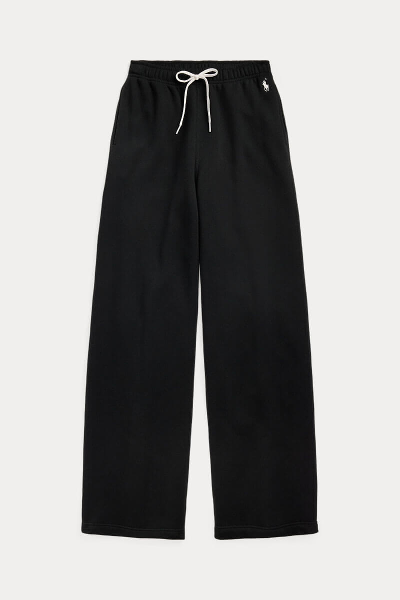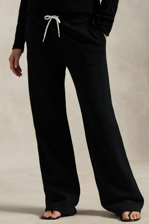 Drawstring Fleece Wide-Leg Sweatpants, Polo Black