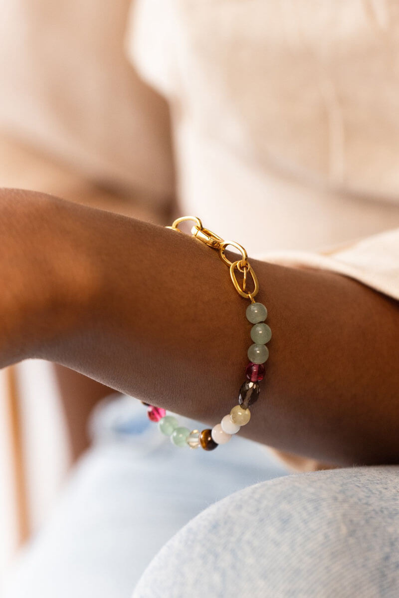 Bracelet made of 100% recycled silver with 18K gold plating from SysterP.- The bracelet has natural stones and pearls in different colors