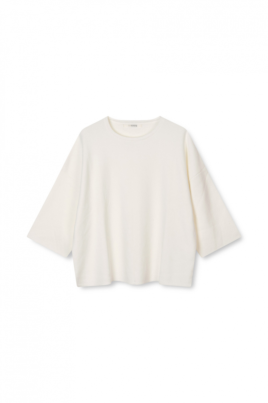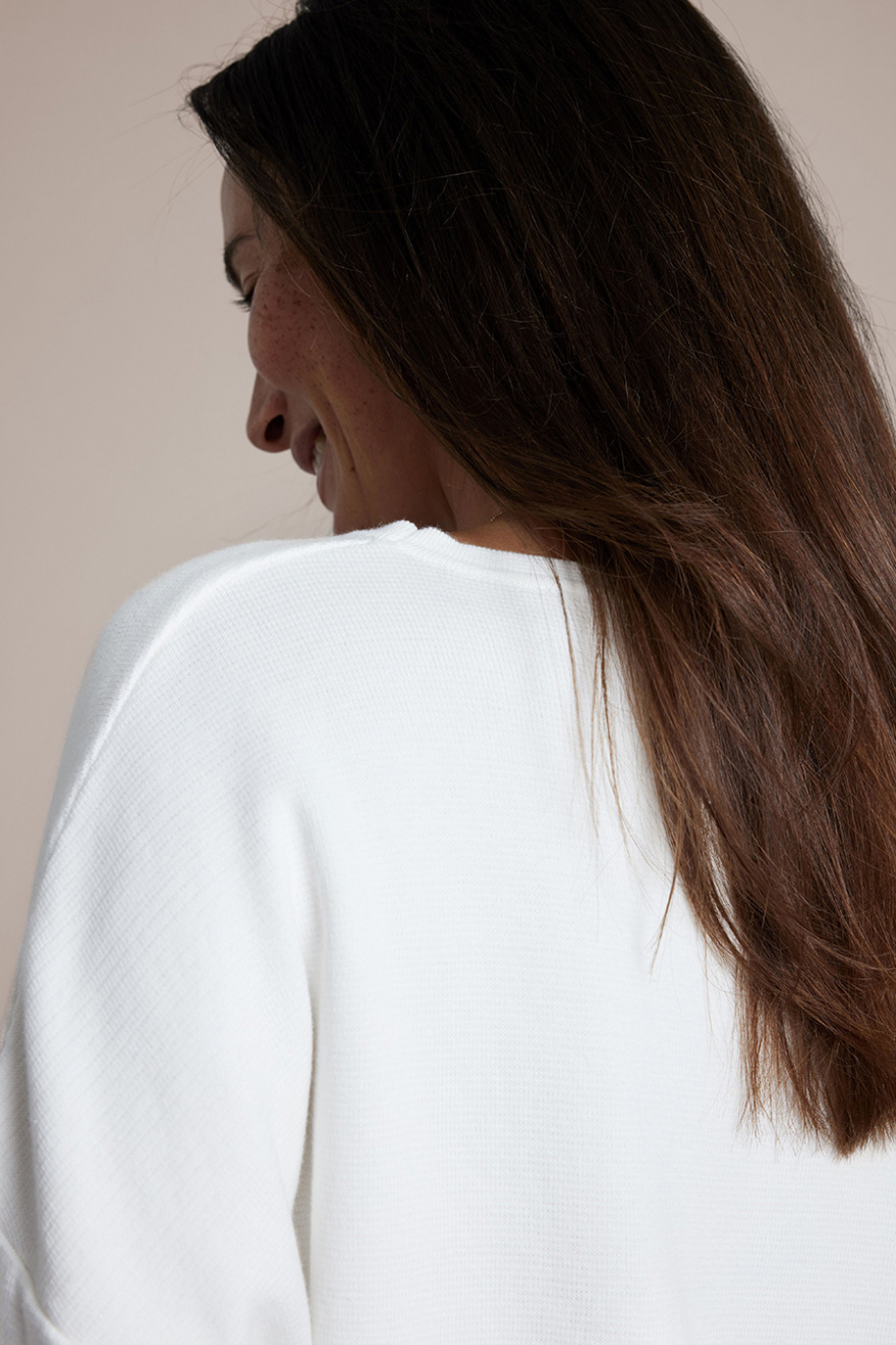 The white knit sweater you've always been missing. Airy cotton, a round neck and a relaxed fit that feels just as right with jeans as over a silk dress. A garment that will last through the seasons and only get better with time.Knitted sweater in comfortable cotton with a loose fit, short sleeves, round neckline and discreet side slits from Sibin Linnebjerg.