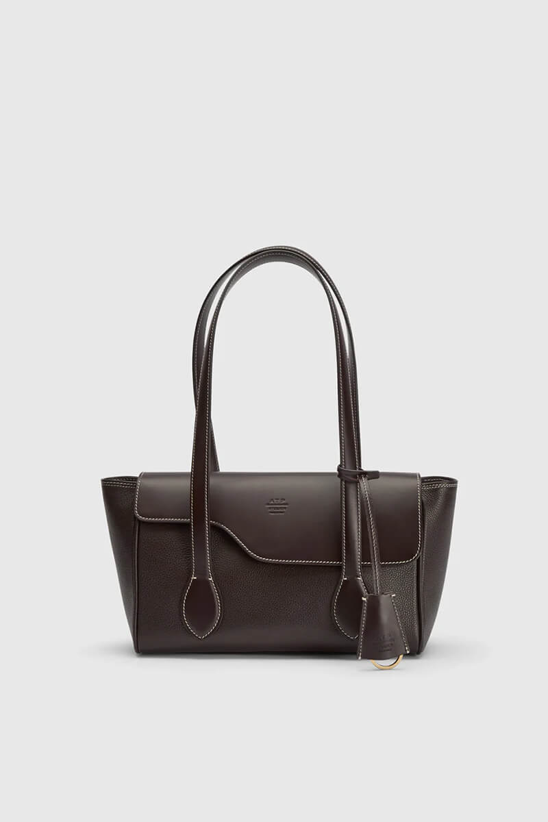 Eira walnut/contrast stitch grained leather shoulder bag