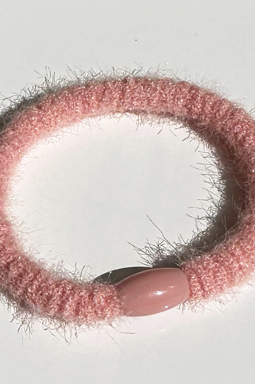 Elastic Fuzzy Hair Tie, Peony Pink