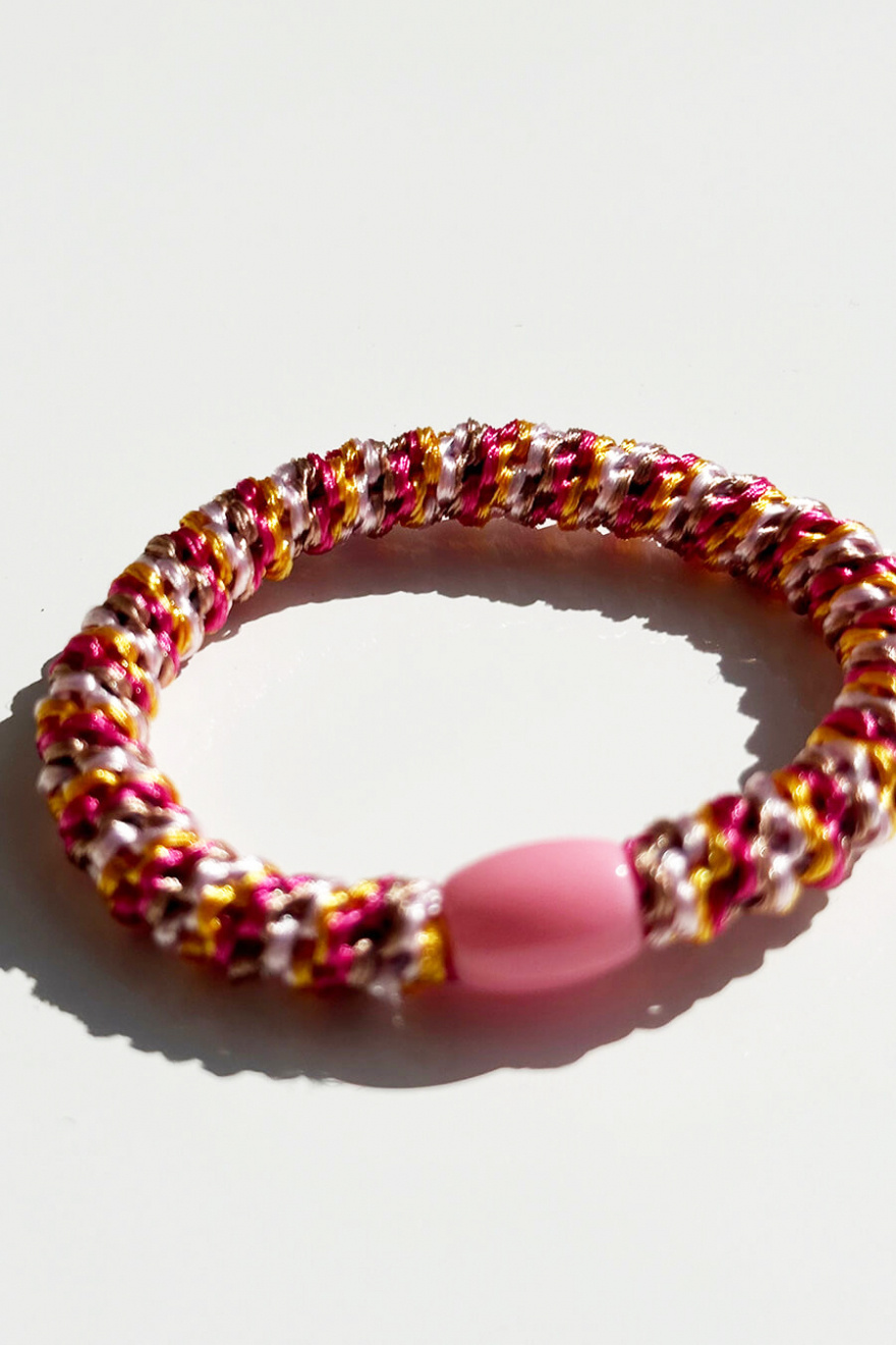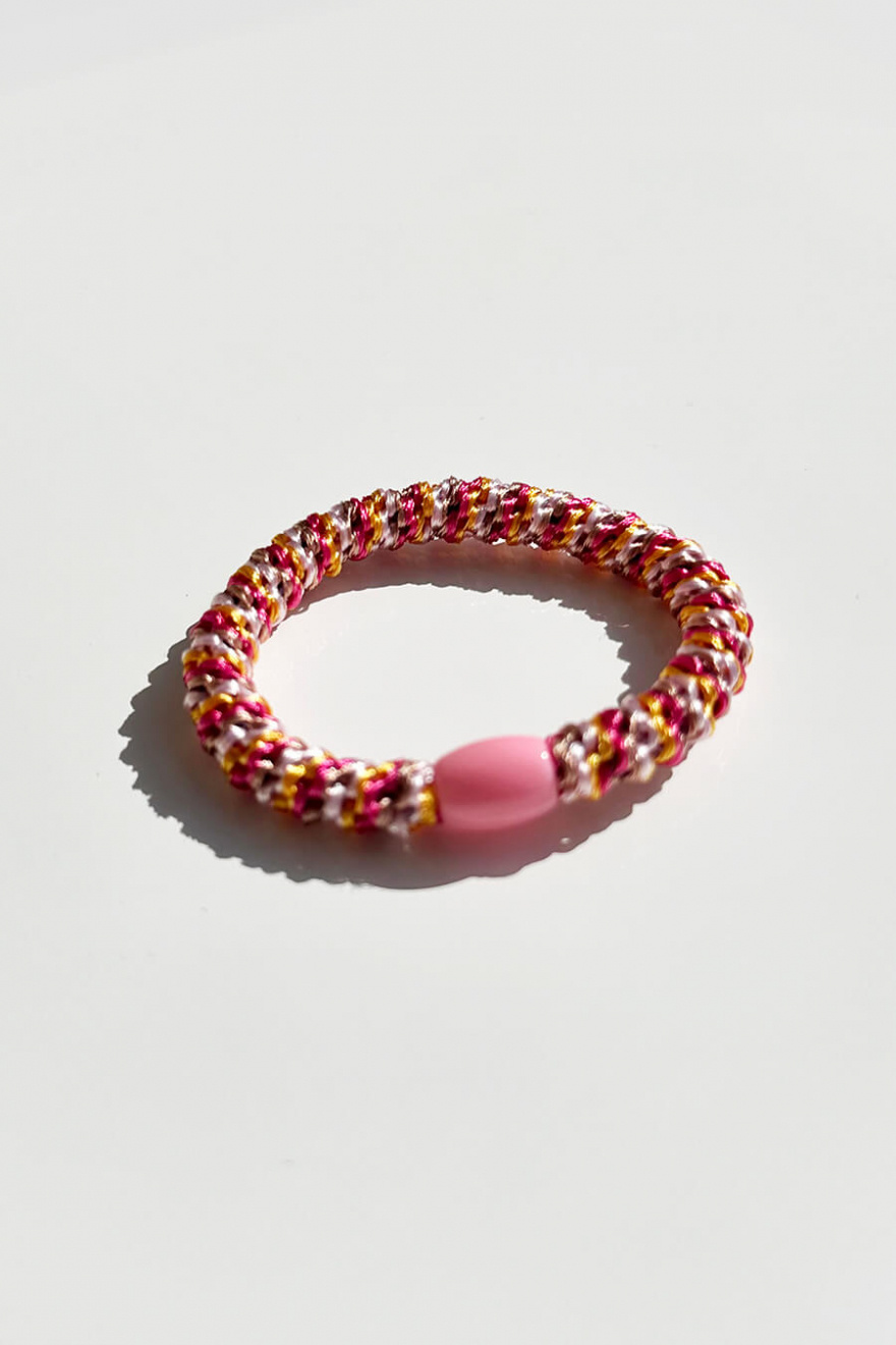 Braided hair tie with a pearl that is gentle on the hair and keeps it in place all day and is a nice accessory that stands out from Elin et Acc.- 100% Polyester