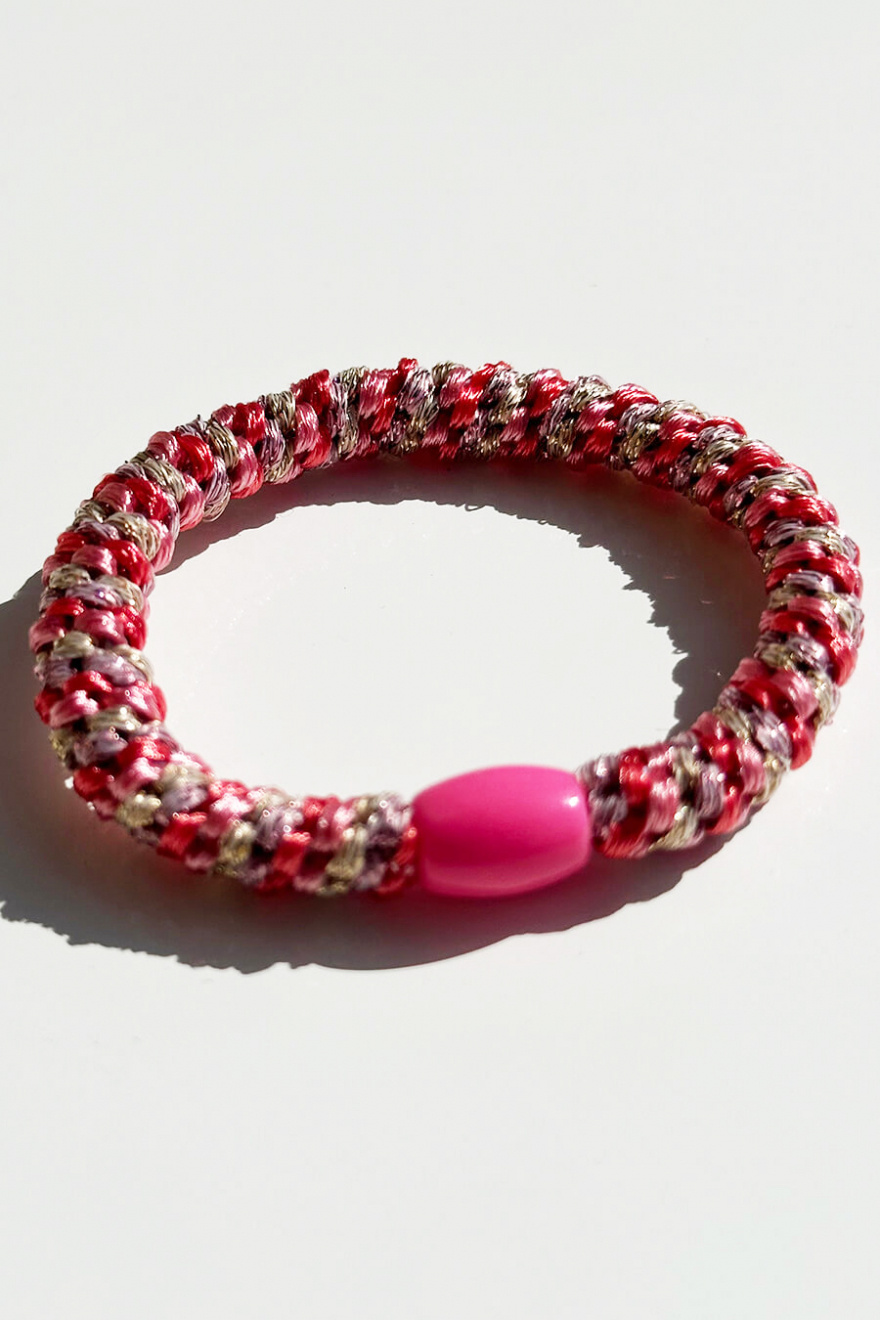 Braided hair tie with a pearl that is gentle on the hair and keeps it in place all day and is a nice accessory that stands out from Elin et Acc.- 100% Polyester