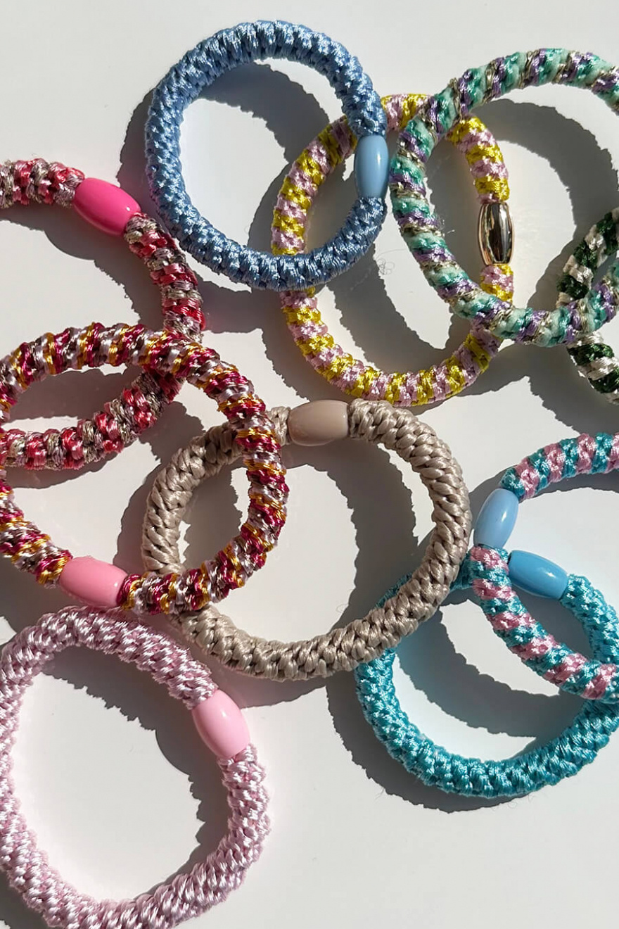 Braided hair tie with a pearl that is gentle on the hair and keeps it in place all day and is a nice accessory that stands out from Elin et Acc.- 100% Polyester