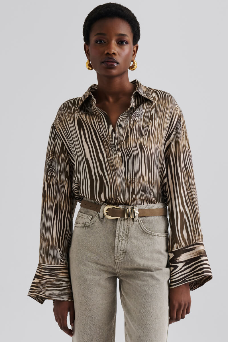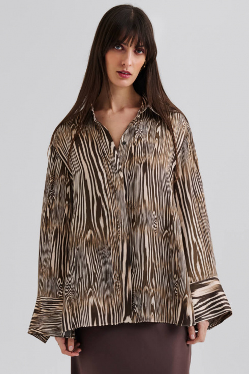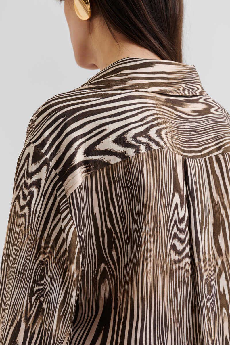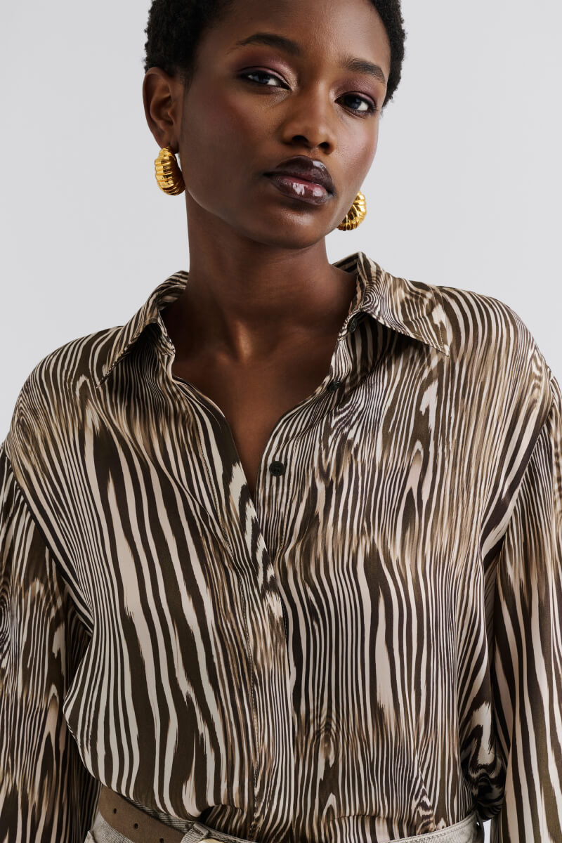 This patterned shirt with a subtle graphic is an updated classic. Style it loosely buttoned over skinny jeans and loafers for a casual luxe feel, or tuck it into a pair of trousers for a sophisticated, modern office look.Patterned viscose shirt with an oversized fit, collar, hidden button closure at the front, side slits and slightly dropped shoulder seams from Malina.