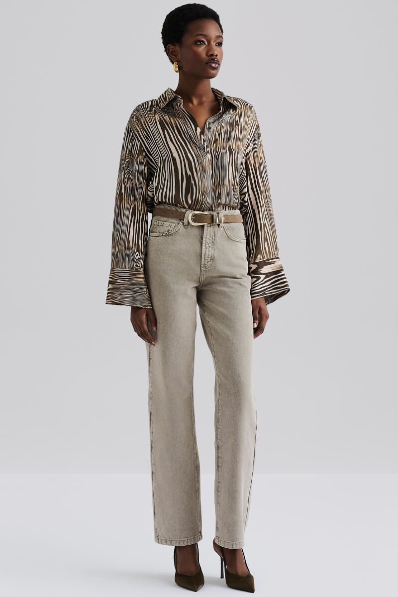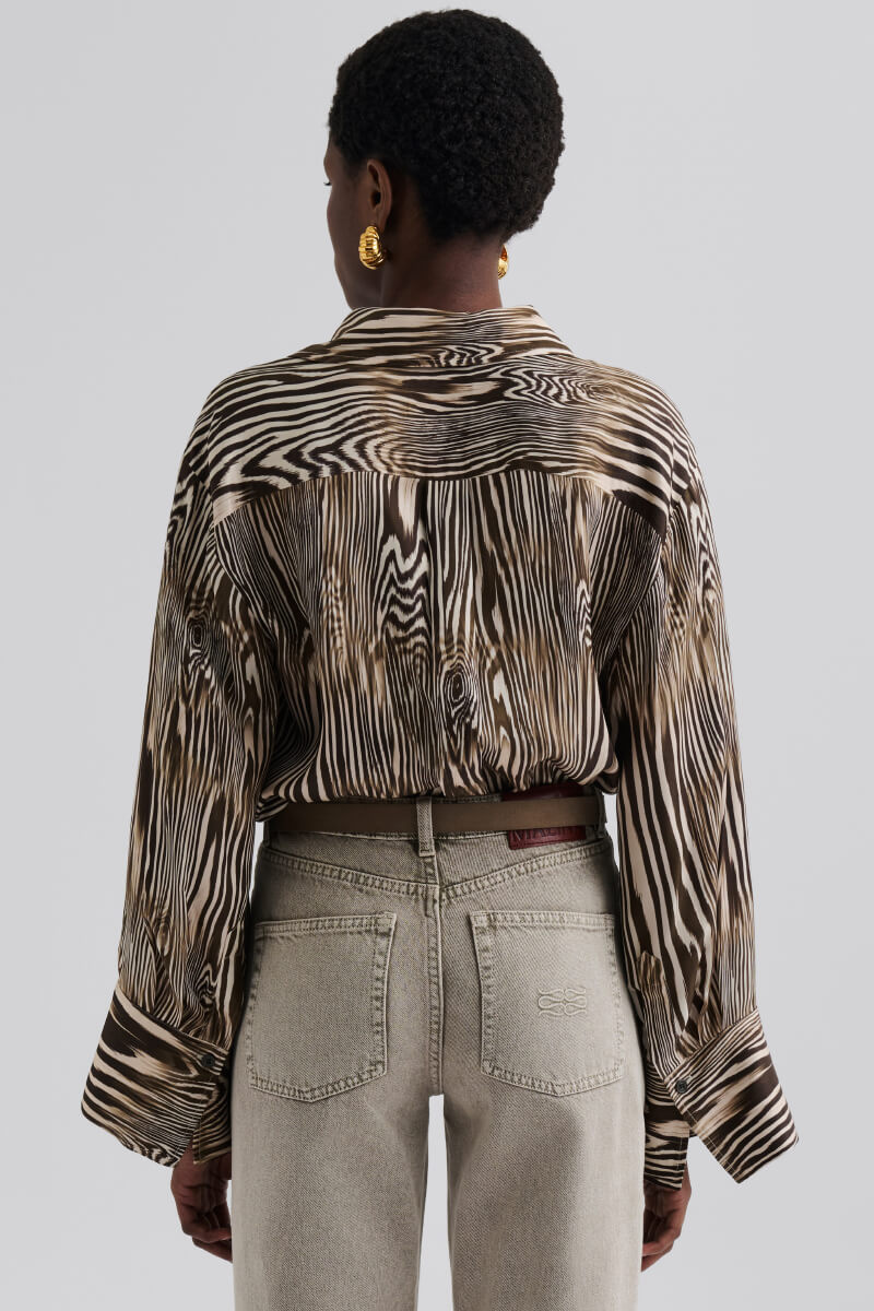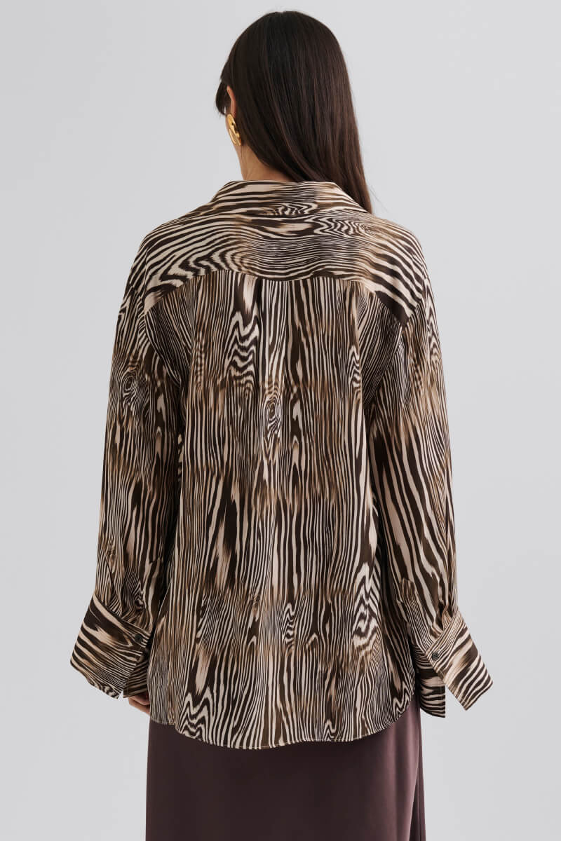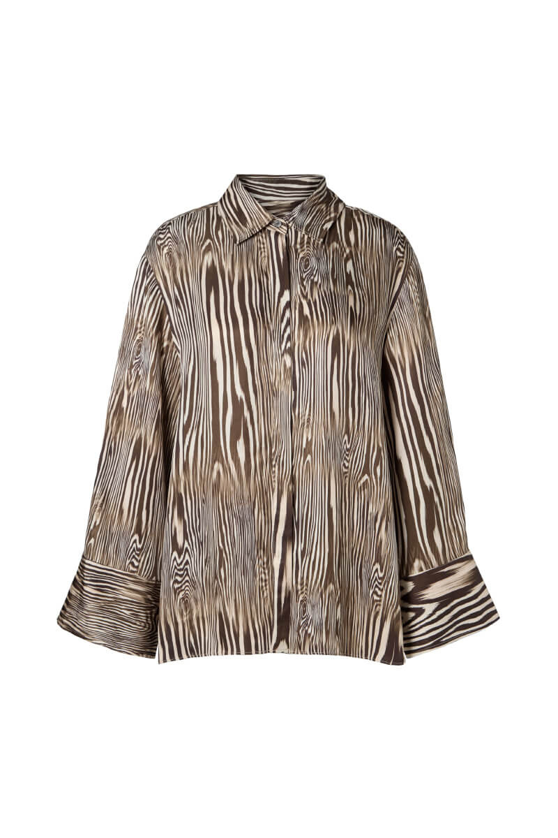 This patterned shirt with a subtle graphic is an updated classic. Style it loosely buttoned over skinny jeans and loafers for a casual luxe feel, or tuck it into a pair of trousers for a sophisticated, modern office look.Patterned viscose shirt with an oversized fit, collar, hidden button closure at the front, side slits and slightly dropped shoulder seams from Malina.
