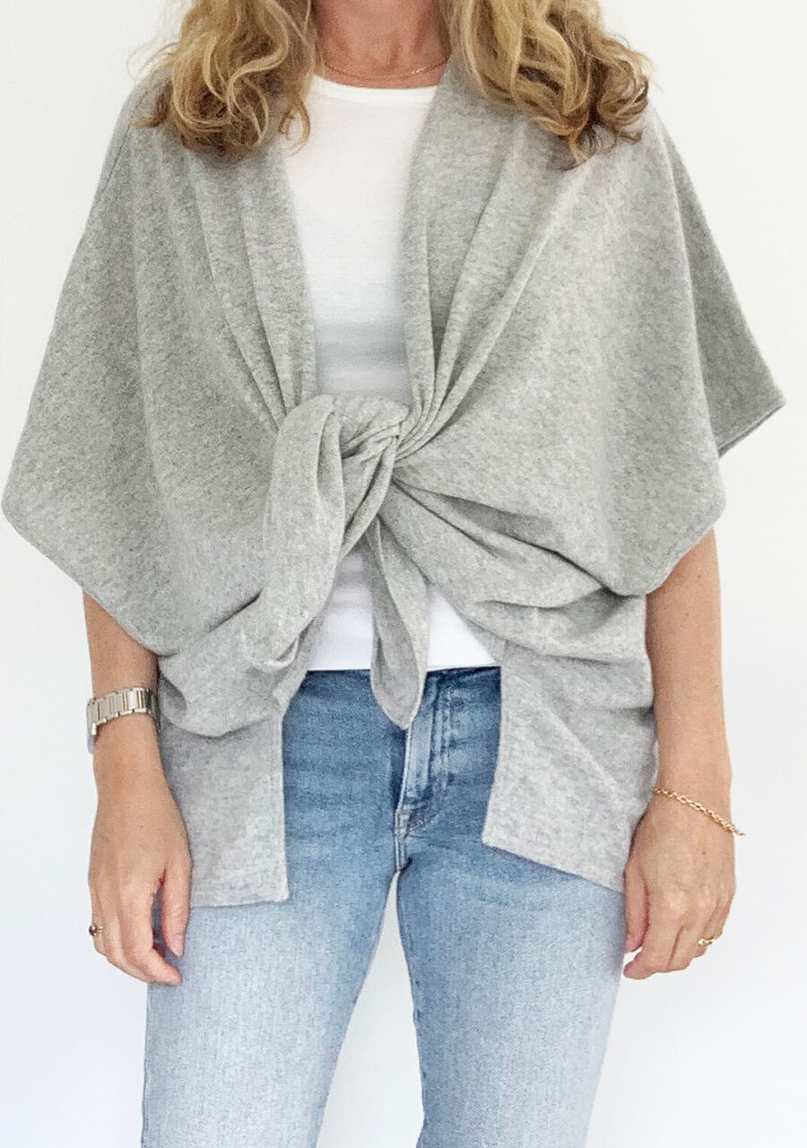 A garment you wear as a cardigan, poncho in luxurious cashmere. Open in front and longer at the back.Space in the garment. Size S/M or M/L.