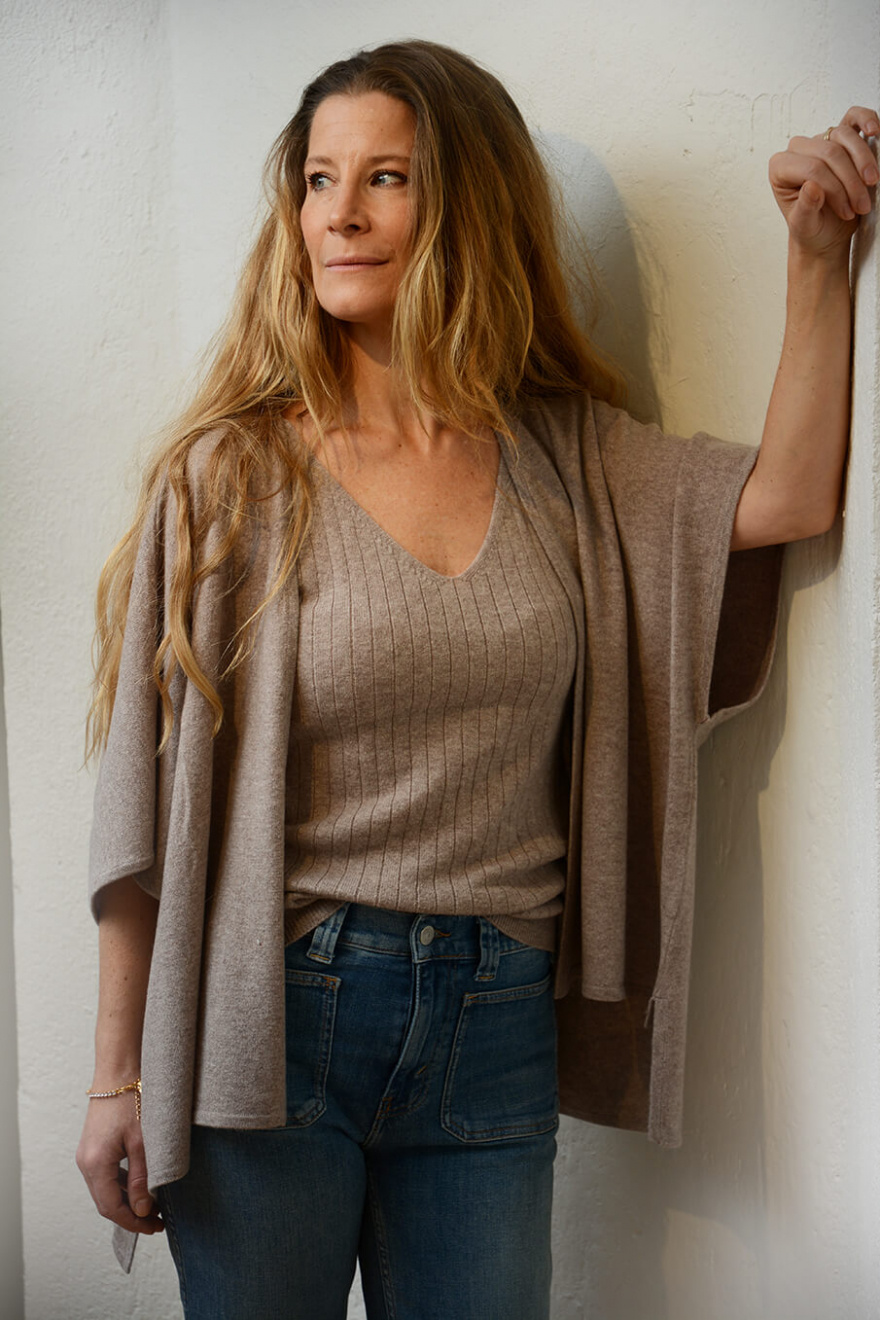 Knitted open cardigan in a luxurious cashmere with ribbed edges, longer at the back and loose fit from Elin Maria Studio.100% Cashmere