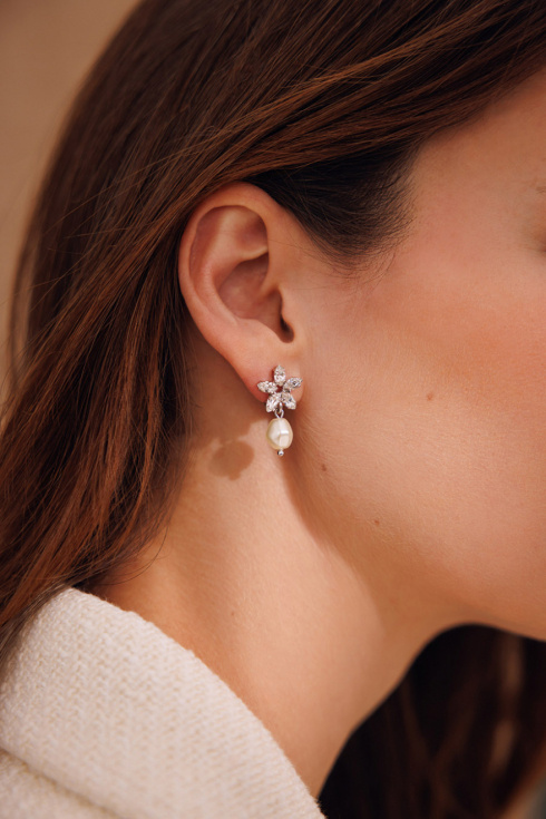 Earrings made in brass with rhodium plated and Swarovski crystals and pearls from Caroline Svedbom.- Size: 2,5x1 cm