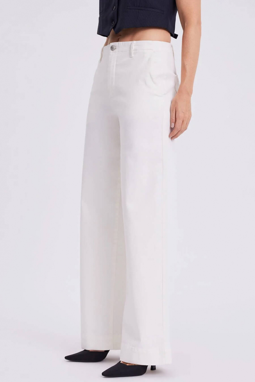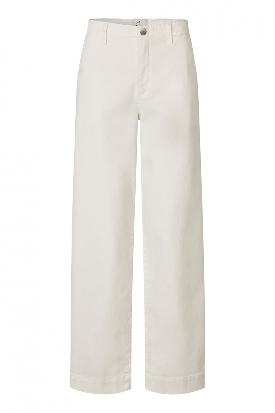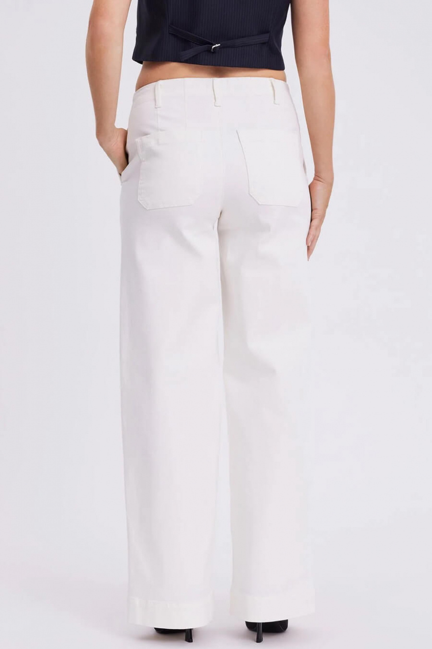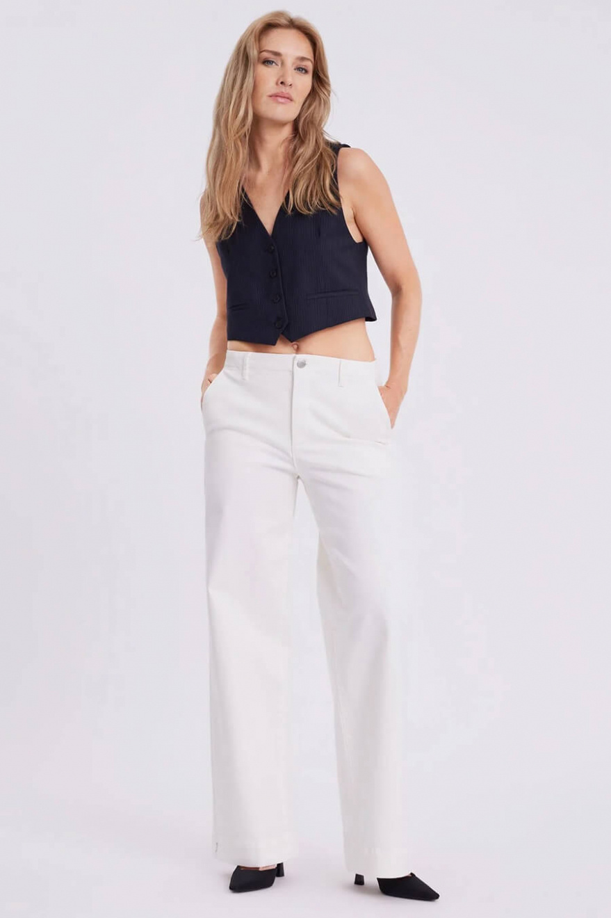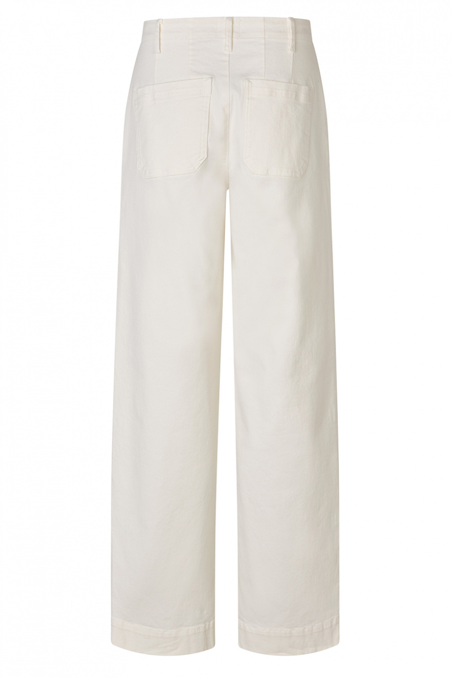 White wide-leg jeans with a mid-rise waist are the definition of chic everyday style. The square back pockets add a modern twist, while the perfect fit accentuates your silhouette. A stylish choice for summer's simplest, most elegant outfits.Jeans in a recycled cotton blend with mid waist, wide legs in full length, pockets at the sides and square pockets back from FiveUnits.