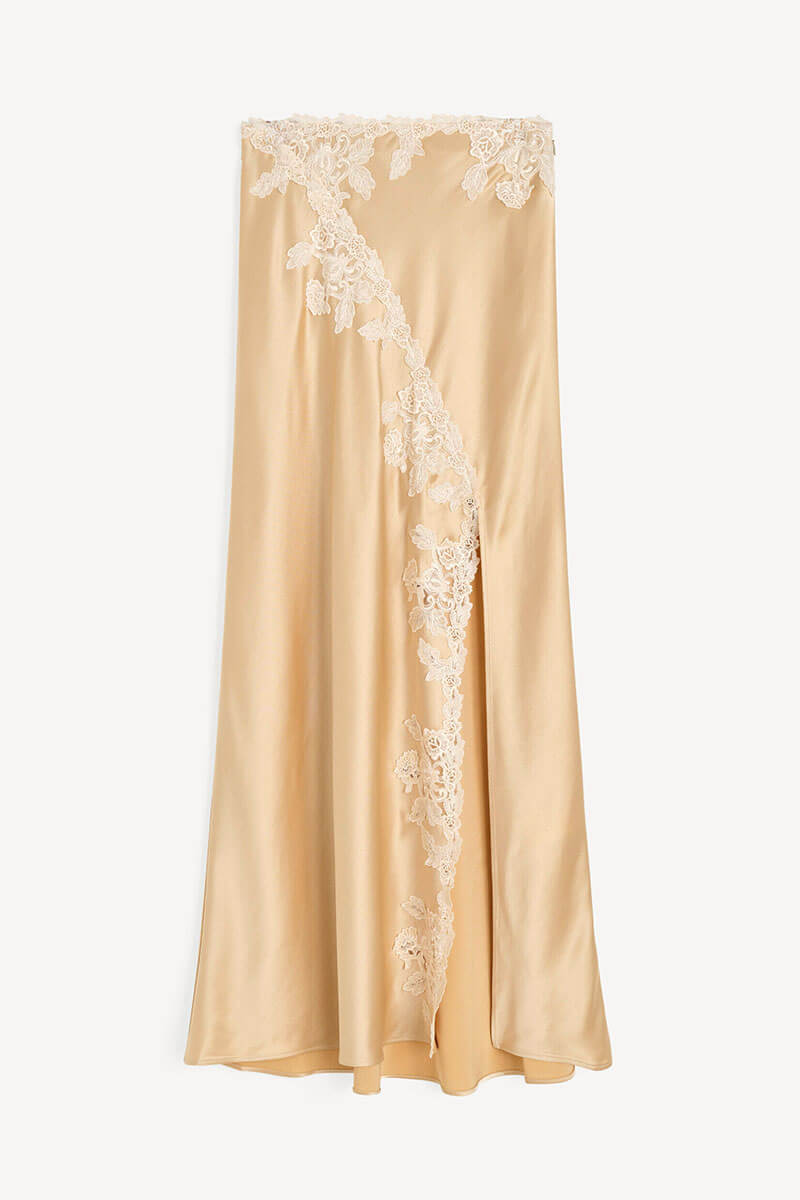 Add a romantic appeal to your spring and summer wardrobe, courtesy of the Erika maxi skirt from By Malene Birger– which stands out with its luxe satin and vintage-inspired lace trims. Dress down for everyday with a minimalistic T-shirt or wear with the matching Madeleine top for the season’s soirees.