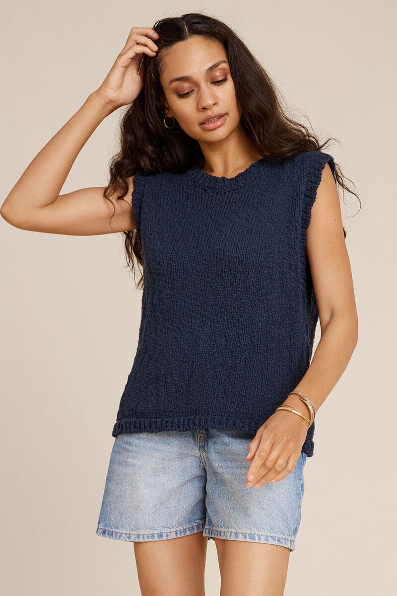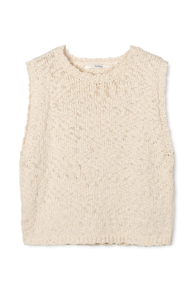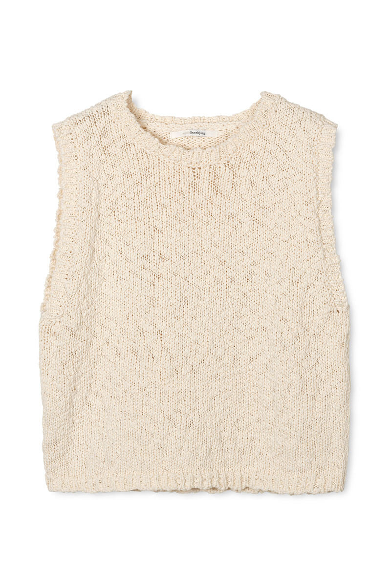 The top is knitted in a luxurious cotton quality with a beautiful texture that makes it a true favorite. The soft and airy feel, together with the round neckline, offers both high comfort and timeless style. Wear it as a top or as a vest layered over a blouse.