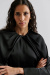 The little black gets a new twist with this satin dream. The flattering drape at the front gives a luxurious silhouette that suits both dinners and late nights out.Short dress in satin with straight fit, long sleeved, draped front, small keyhole bak and closes with a button back from By Malina.