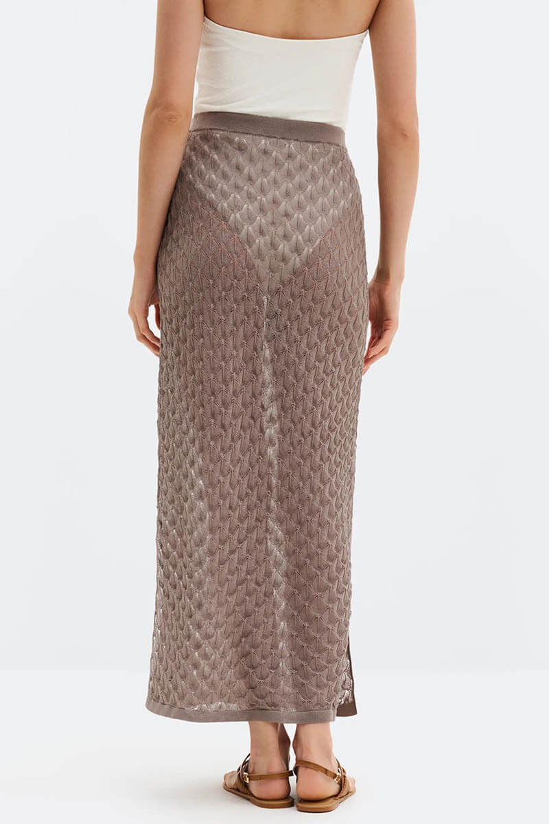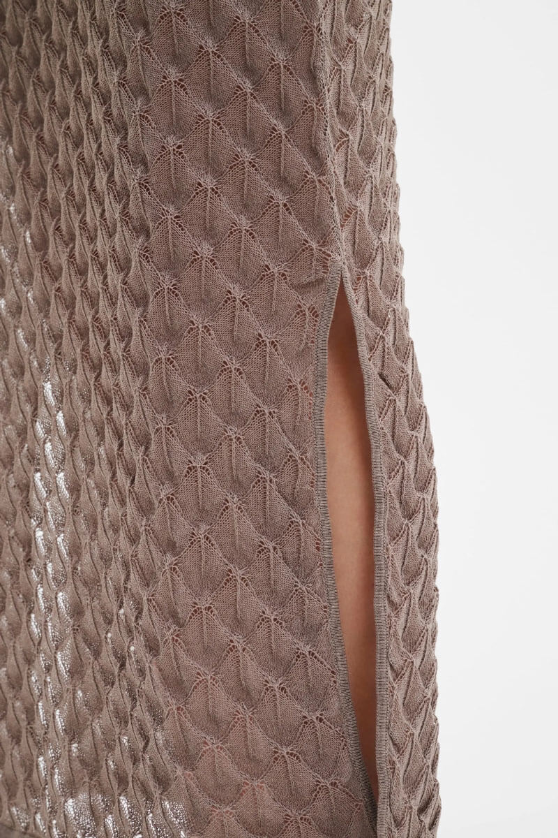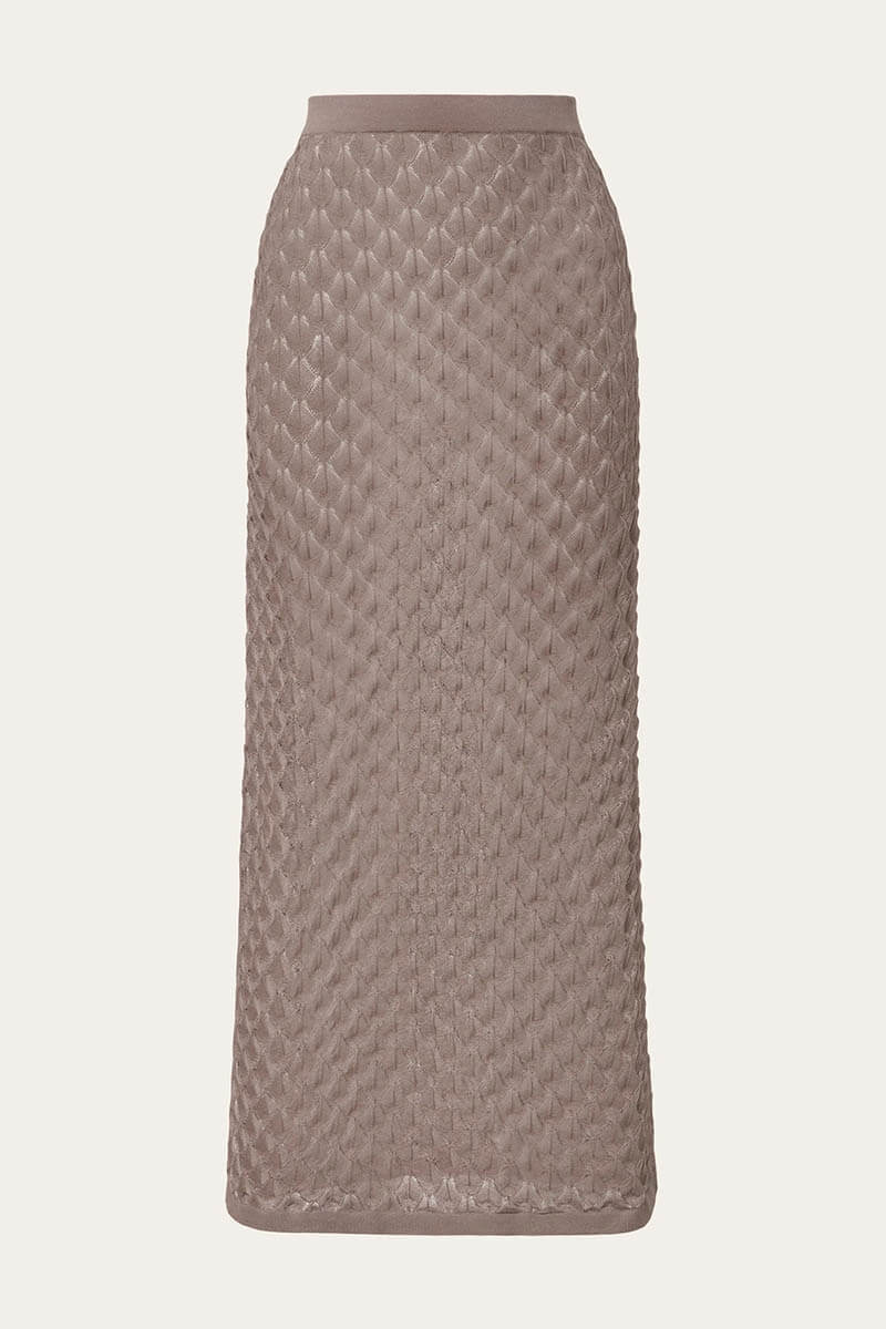Fannie Pointelle Knitted Maxi Skirt, Taupe