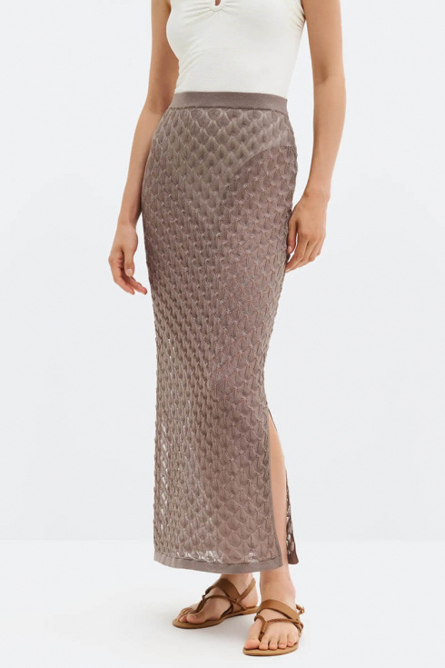 A sophisticated pointelle knit maxi skirt that combines a feminine silhouette with high comfort. The decorative openwork pattern and flattering side slit create a modern and elegant look. Style with the matching top for a complete set or with a simple t-shirt for a more relaxed vibe.