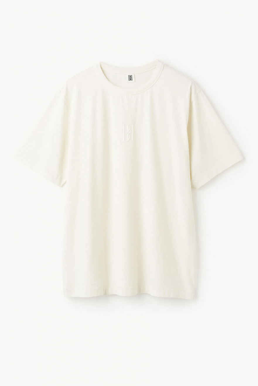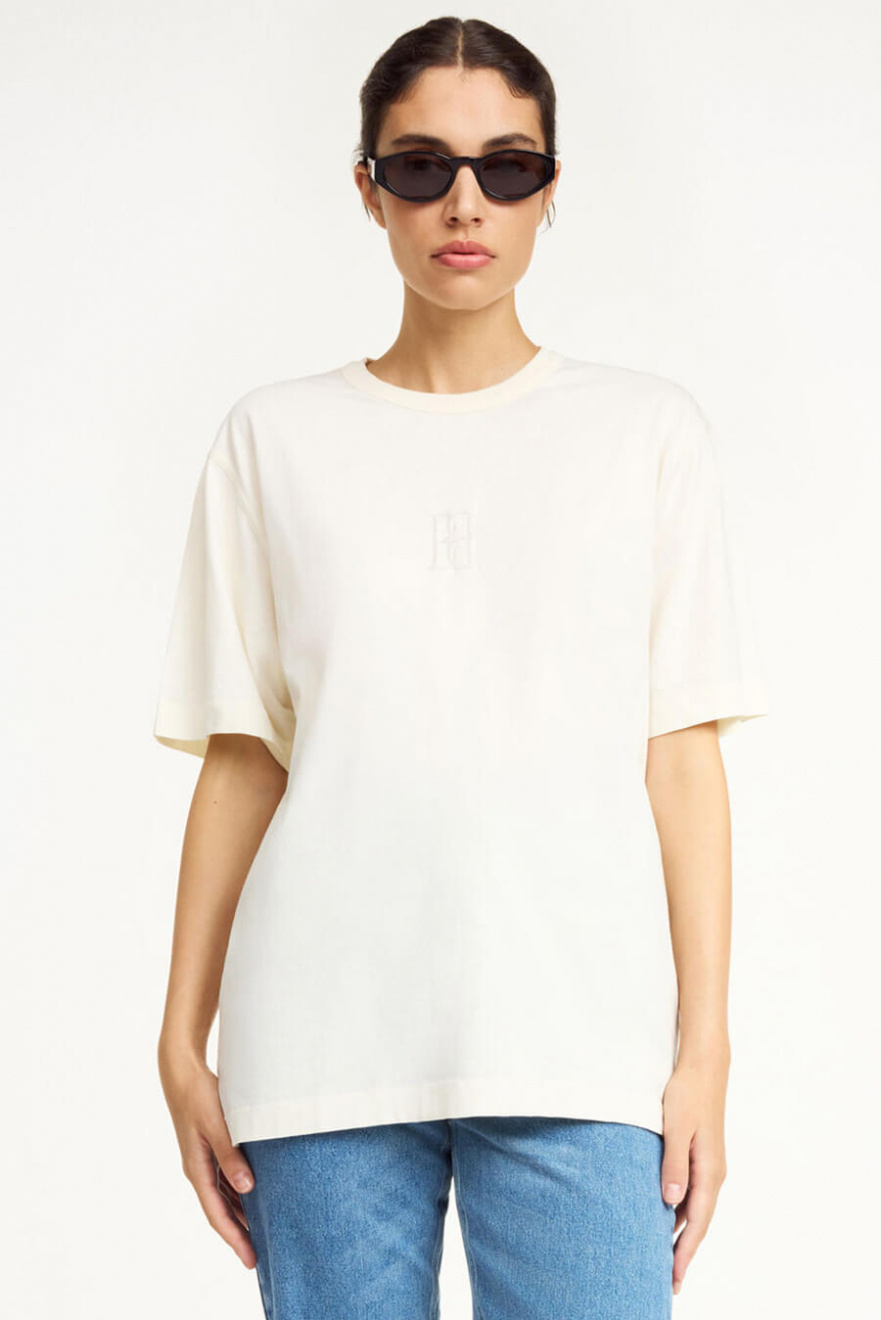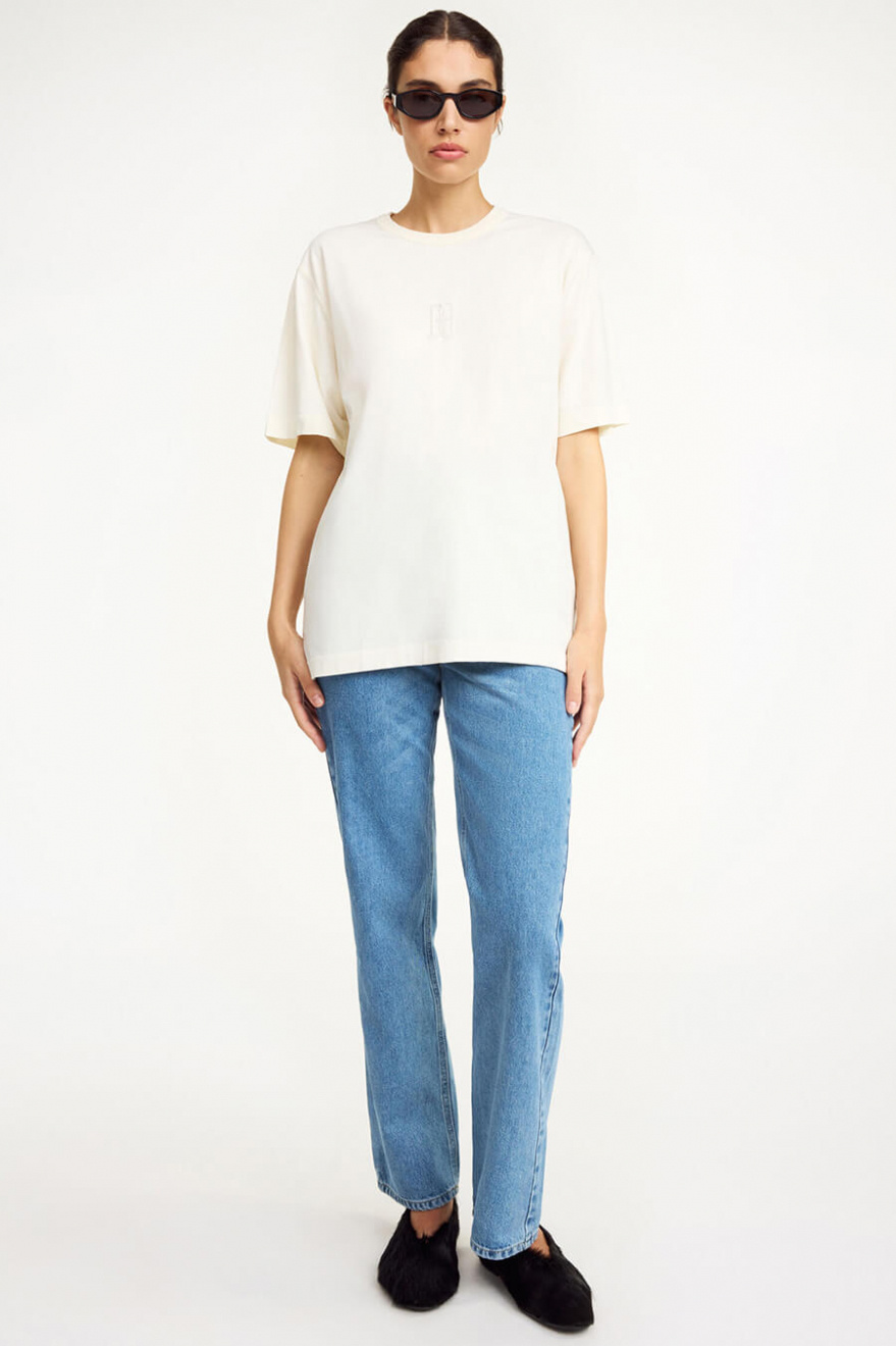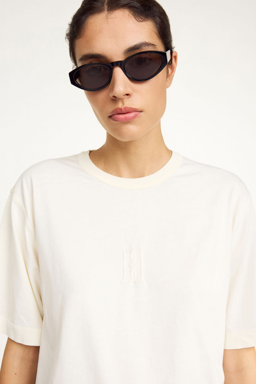 The perfect oversized t-shirt in soft cotton – timeless, chic and always right. Perfect with denim for a casual look or with tailored trousers for a stylish feel.T-shirt in organic cotton with an oversized fit, embroidered logo on the front, short sleeves and round neckline from By Malene Birger.