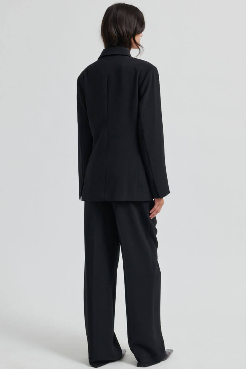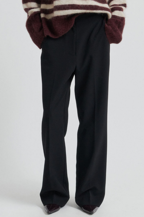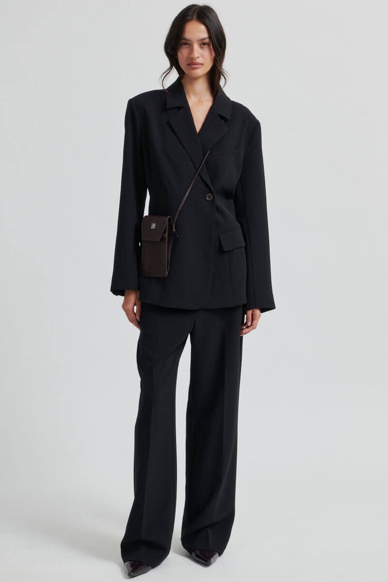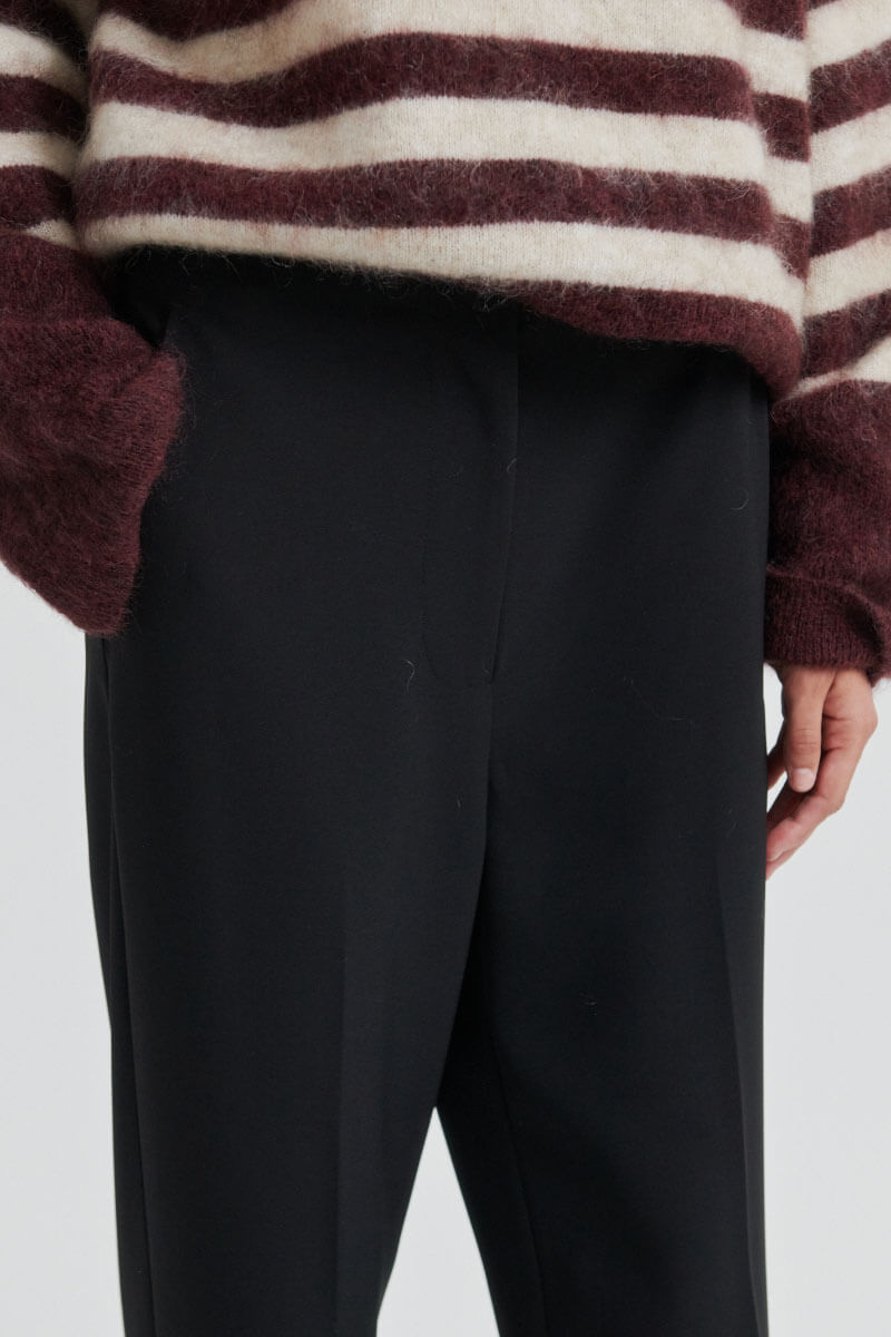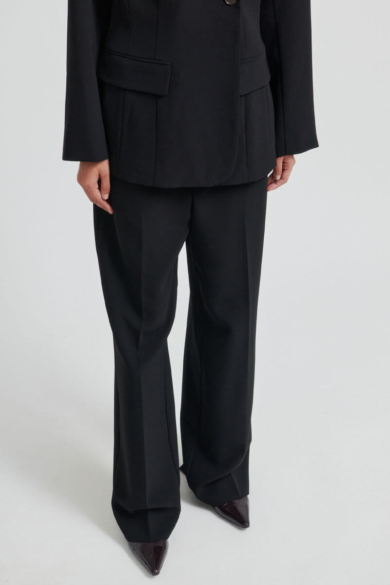 Black trousers with a full-length straight leg, mid-rise waist and relaxed fit for a timeless, relaxed silhouette. Pair with a crisp white shirt for day, or a silk blouse and heels for an elegant evening look.Recycled blend pants with full-length straight legs, side pockets, mid-rise waist and relaxed fit from Second Female.