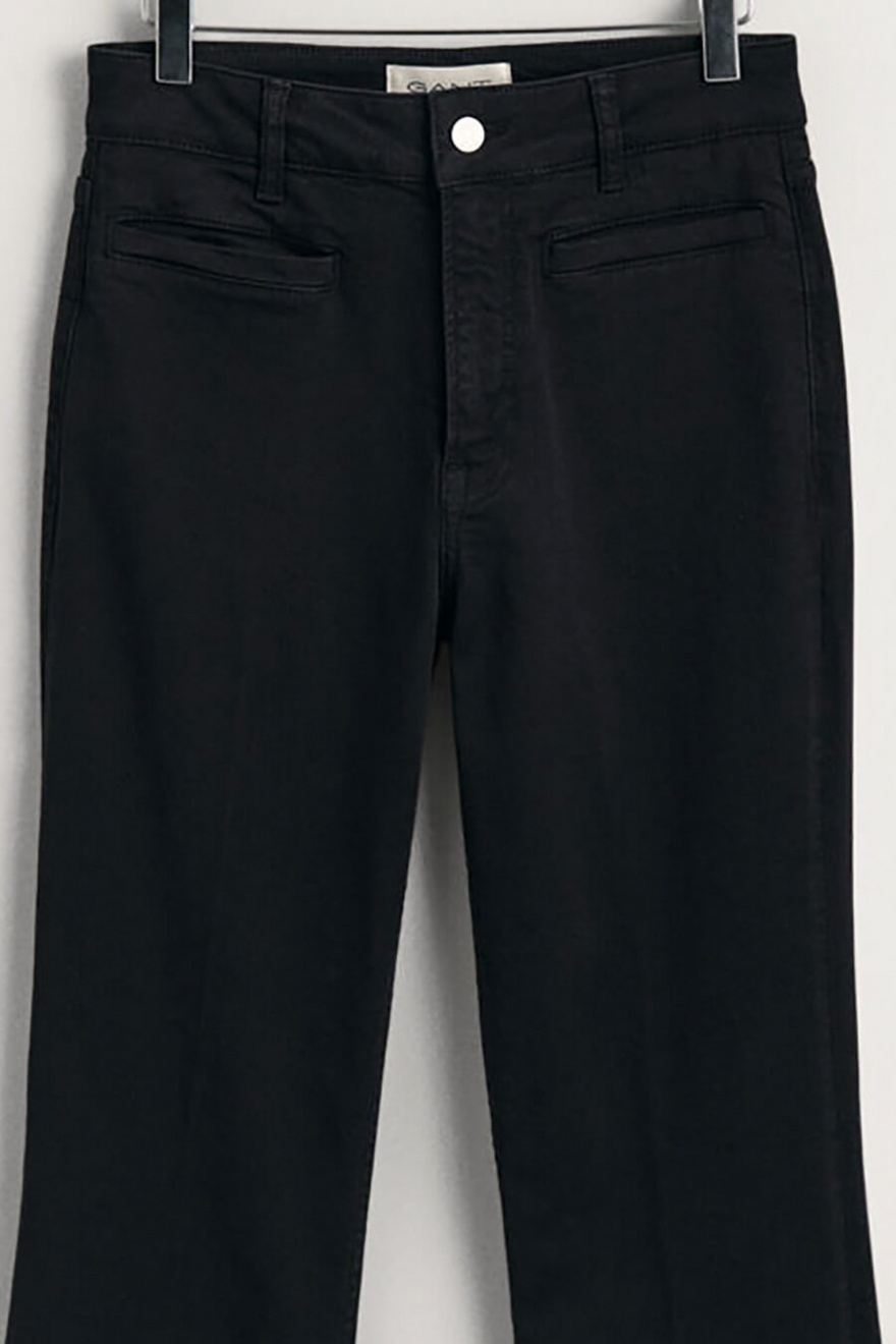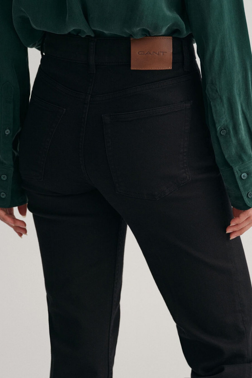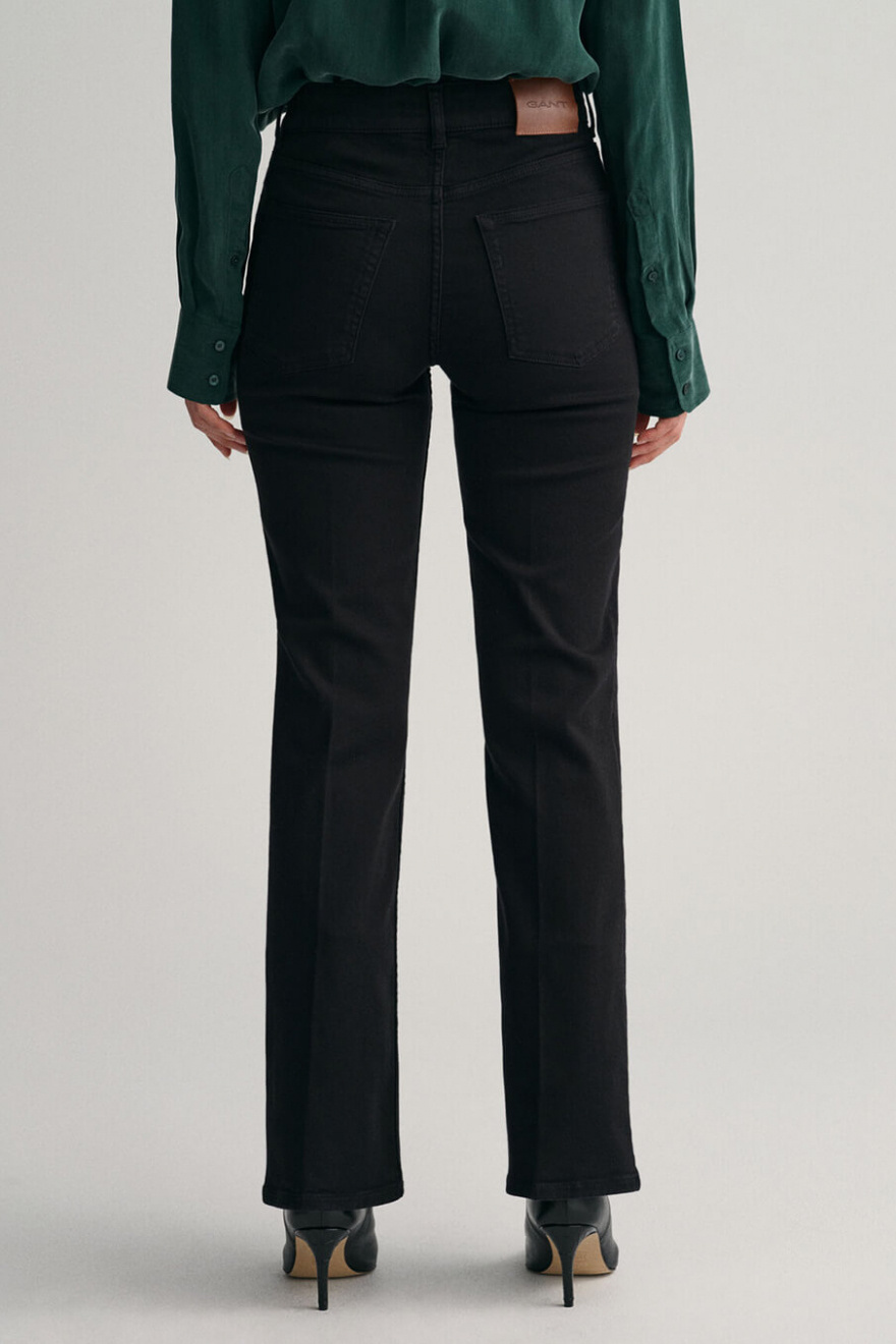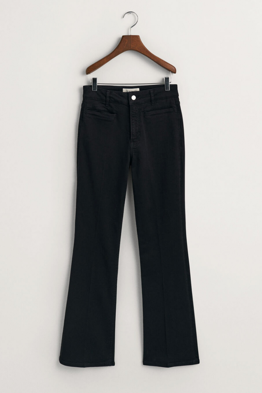 Garment-dyed jeans from Gant with a soft feel and deep shade in a stylish bootcut model. They are made from cotton with a lot of stretch for high compliance and comfort, and have a slim fit, high waist and flared legs. The jeans have welt pockets at the front, logo loop buttons and a leatherGANT badge on the back waistband.
