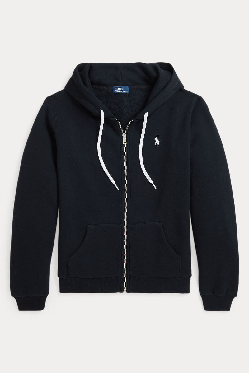 A white zip-up hoodie is the staple that always feels right. The timeless design combines comfort and style, perfect for everything from long walks to relaxed days at home. A versatile addition to any wardrobe.Hoodie with a zipper front, embroidered logo front, fleece on the insize, drawstring at the hood, ribbknitted cuffs and relaxed fit from Polo Ralph Lauren.
