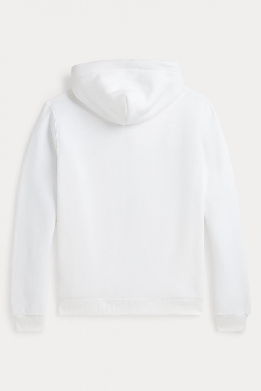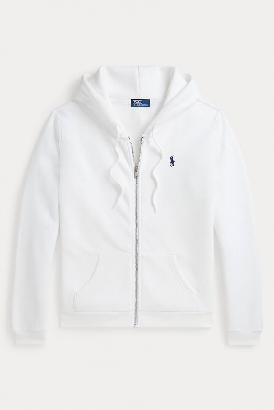 A white zip-up hoodie is the staple that always feels right. The timeless design combines comfort and style, perfect for everything from long walks to relaxed days at home. A versatile addition to any wardrobe.Hoodie with a zipper front, embroidered logo front, fleece on the insize, drawstring at the hood, ribbknitted cuffs and relaxed fit from Polo Ralph Lauren.