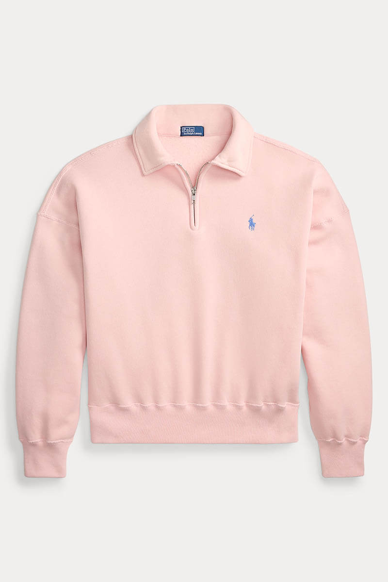 Crafted from a loopback fleece in a medium-weight cotton blend.This quarter-zip sweatshirt features a soft, terry-like interior and is embroidered with the iconic Pony at the chest. It has a classic collar, a partial front zip, contrast embroidered chest logo, and ribbed cuffs and hem, with a relaxed fit.