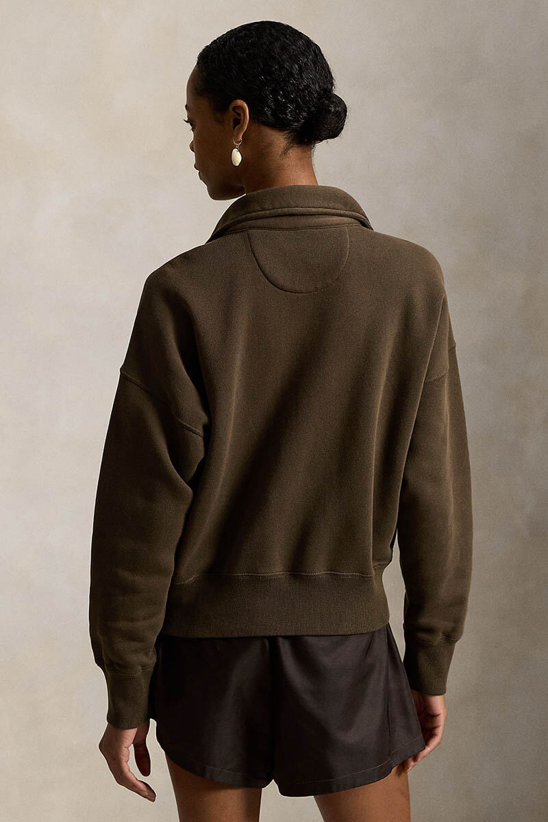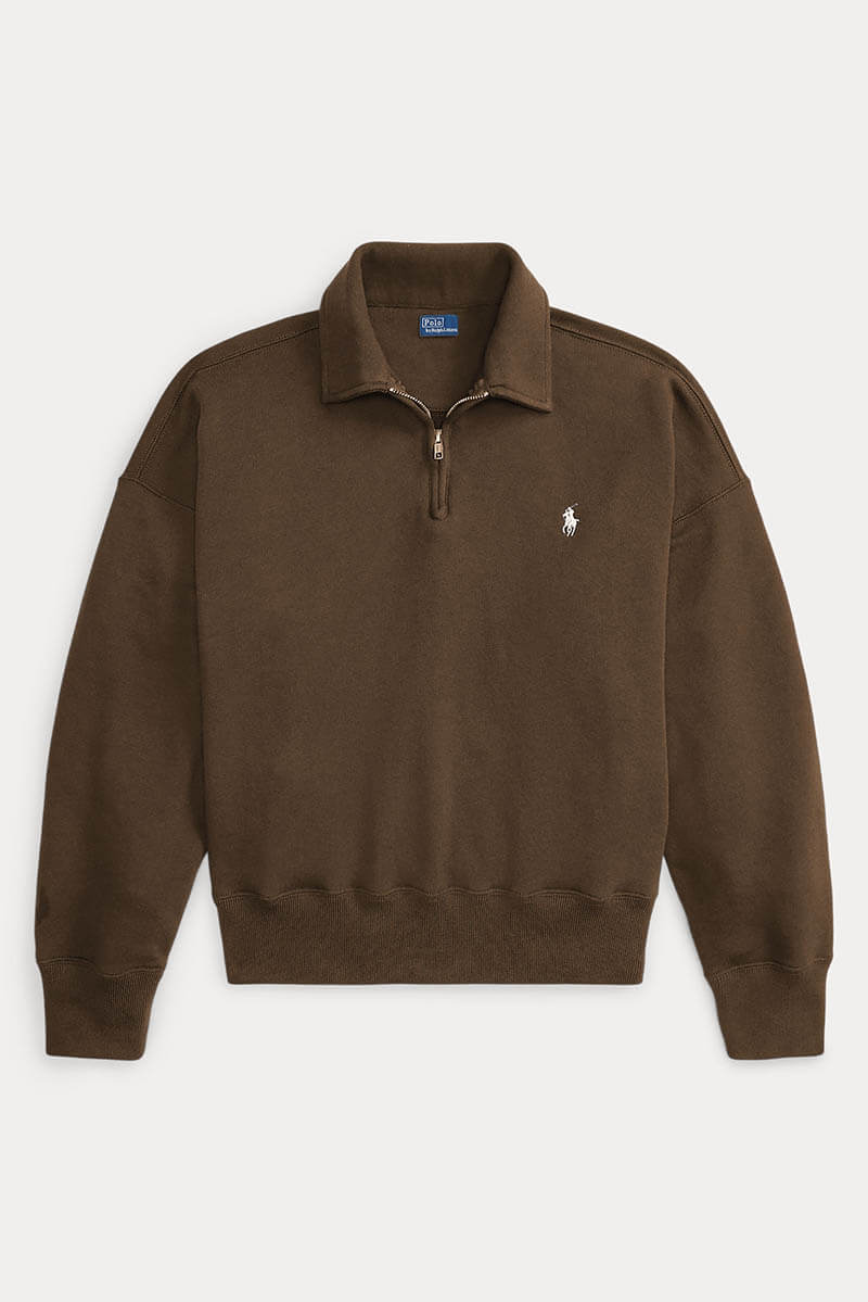 Crafted from a loopback fleece in a medium-weight cotton blend.This quarter-zip sweatshirt features a soft, terry-like interior and is embroidered with the iconic Pony at the chest. It has a classic collar, a partial front zip, contrast embroidered chest logo, and ribbed cuffs and hem, with a relaxed fit.