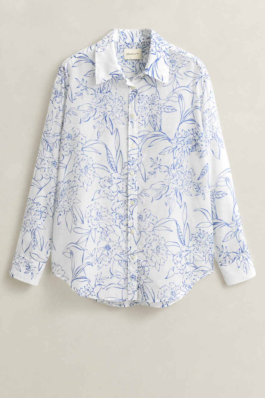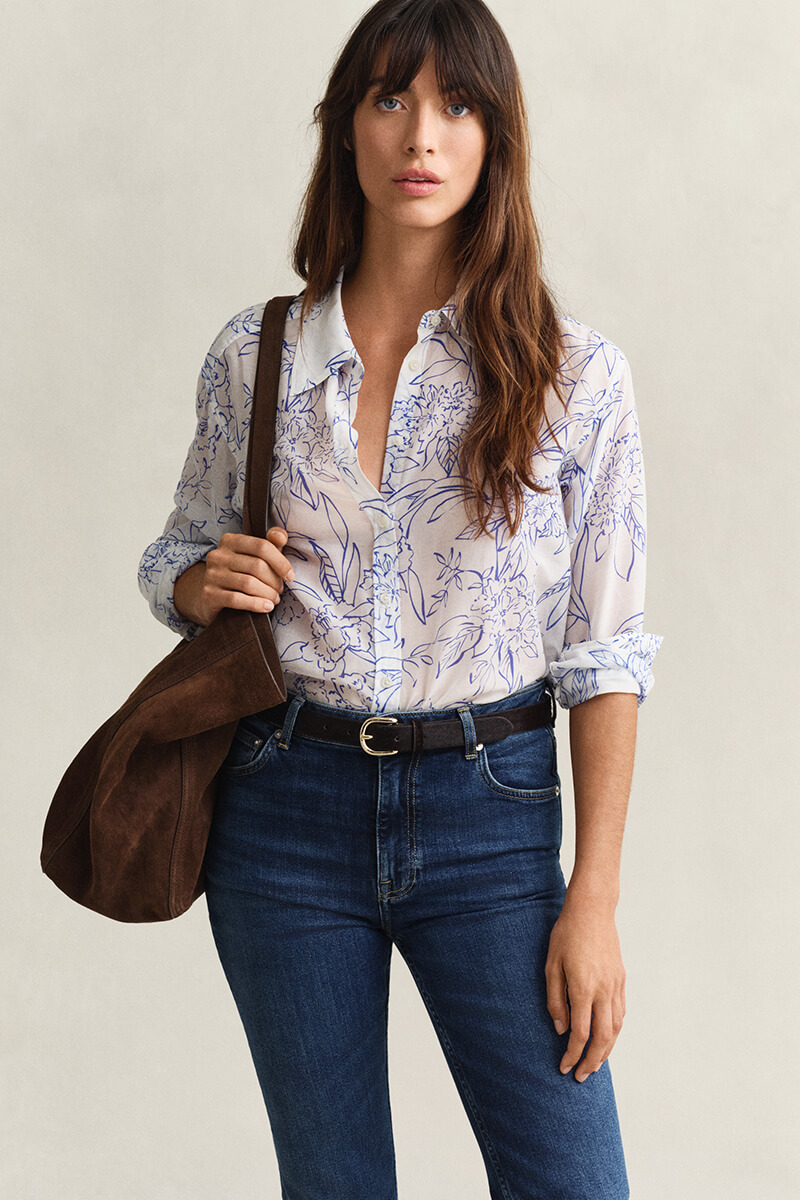 Blouse in a soft, comfortable cotton–silk blend with a painted print. Lovely for spring with jeans and for summer with linen trousers.Regular fit.