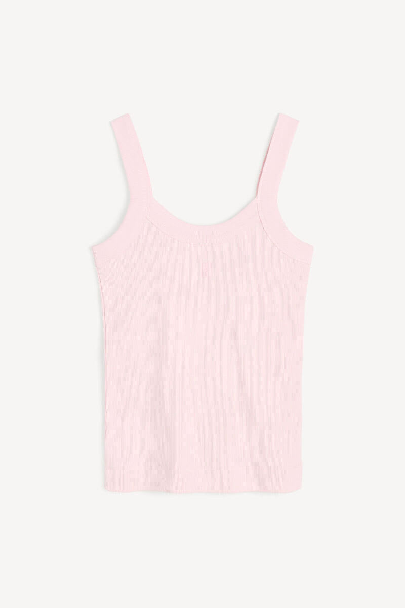 Pink ribbed tank top with a figure-hugging fit and wide shoulder straps - a soft yet confident base for all of this season's looks. The monogram detail at the front gives a discreet yet stylish feel.Ribbknitted tank top in organic cotton with wide shoulderstraps, slim fit and embroidered logo front from By Malene Birger.