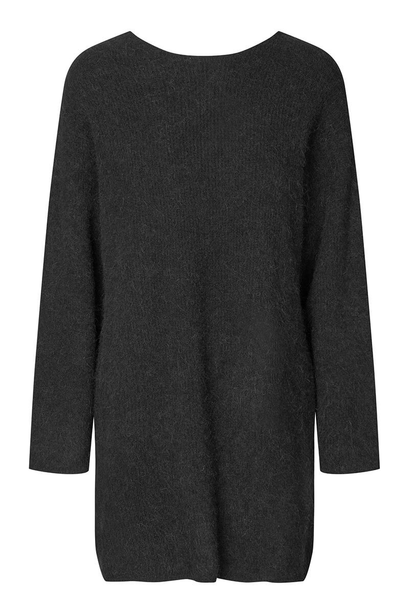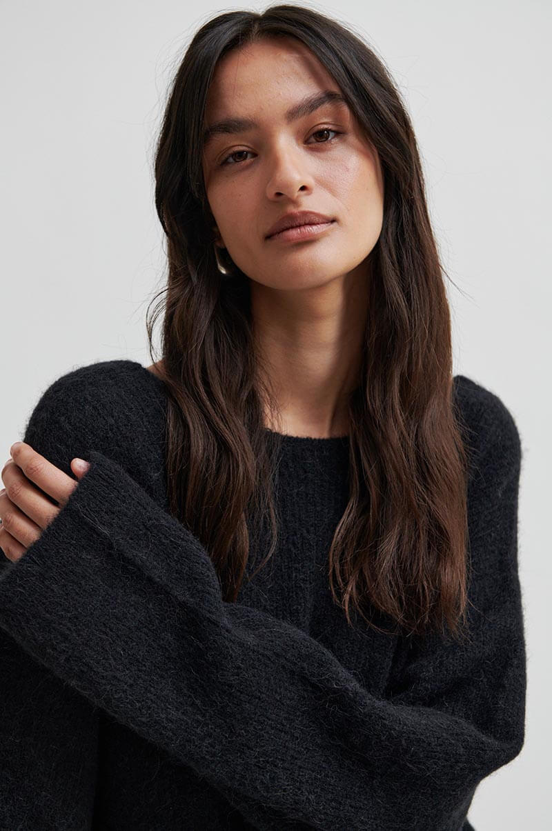 Crafted from a soft, premium blend of alpaca and wool, it embraces elegance in every detail. Pair it with sheer tights and heels for a chic look that seamlessly transitions from day to evening. For a more relaxed approach, wear it layered over perfectly tailored jeans. The loose fit creates a modern silhouette, while the subtle V-shaped back adds a feminine touch – refined yet comfortable.
