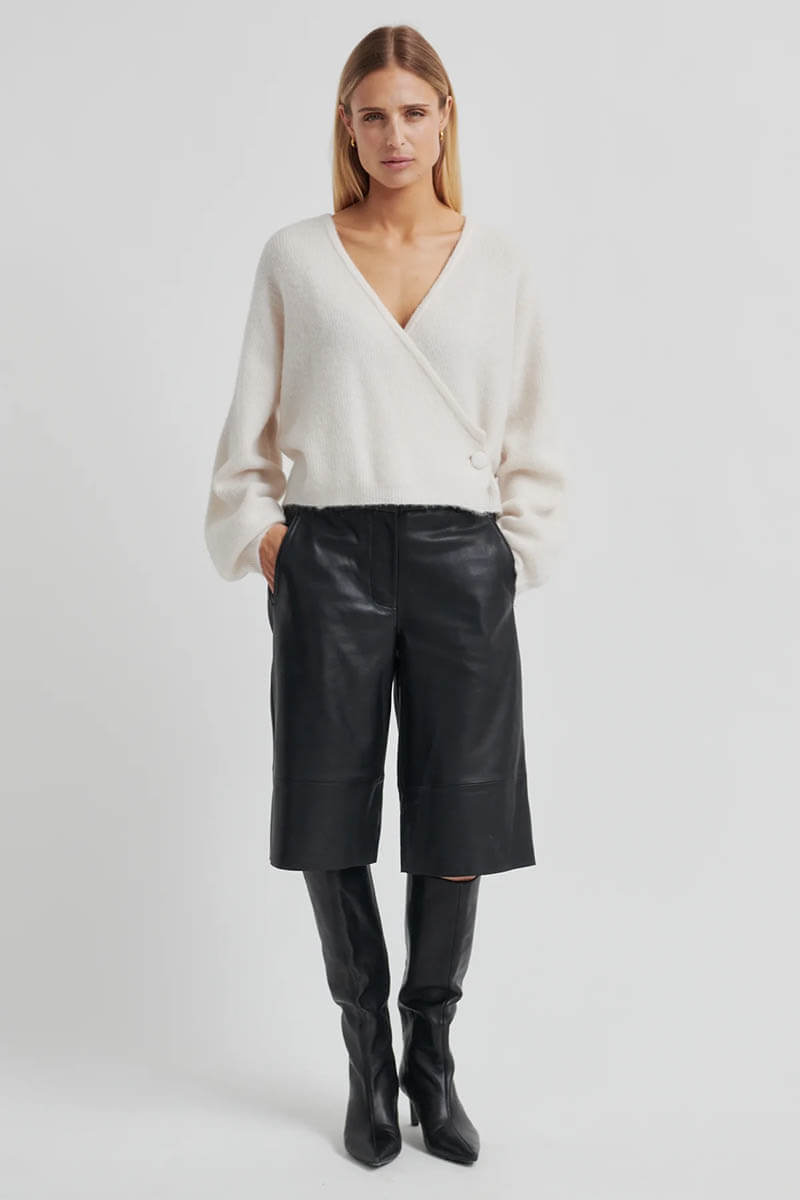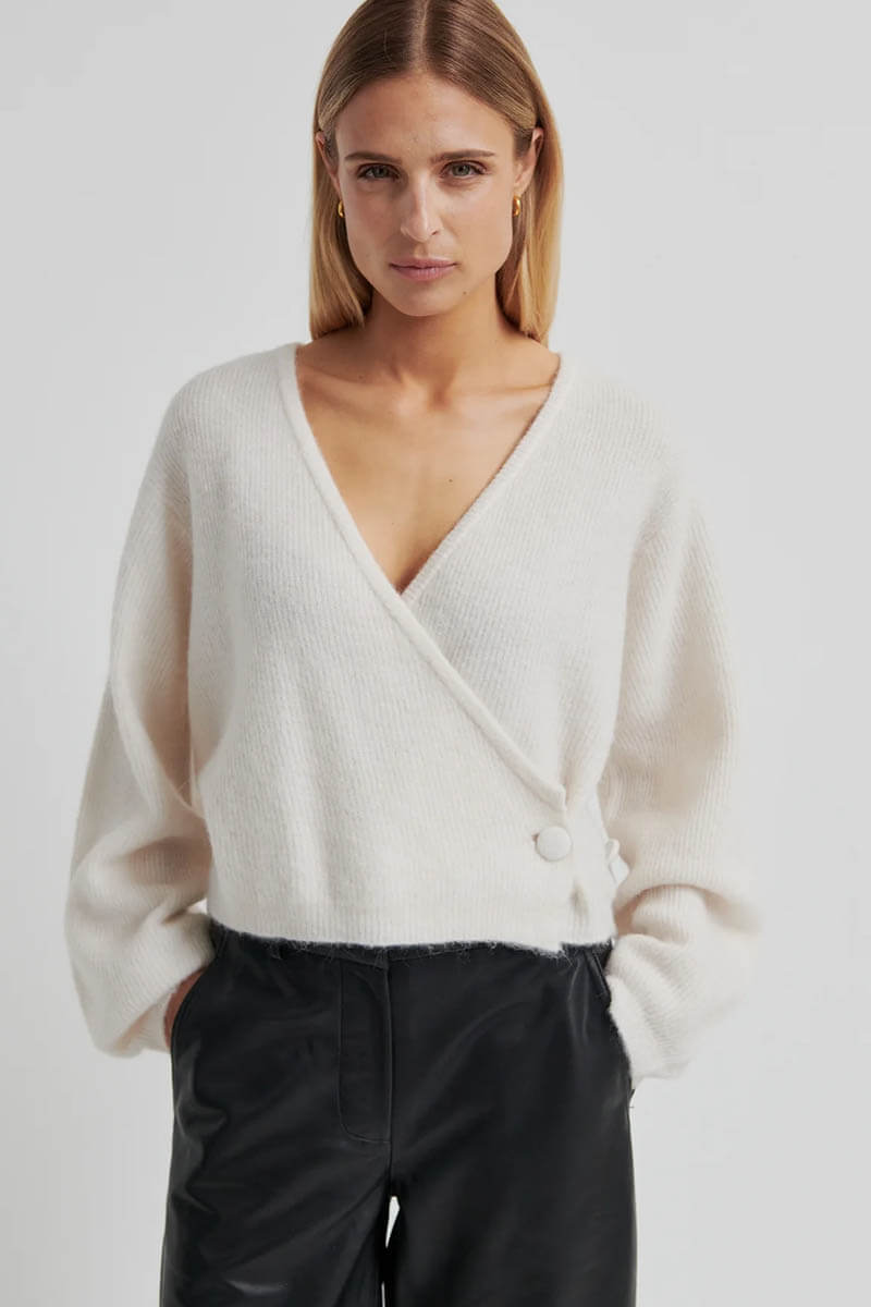 A refined yet feminine knit from Second Female with a soft, fluffy texture and a relaxed, contemporary feel. Crafted from a luxurious fabric blend, this pullover features a crossover V-neckline with two buttons that allow for adjustable fit and styling.