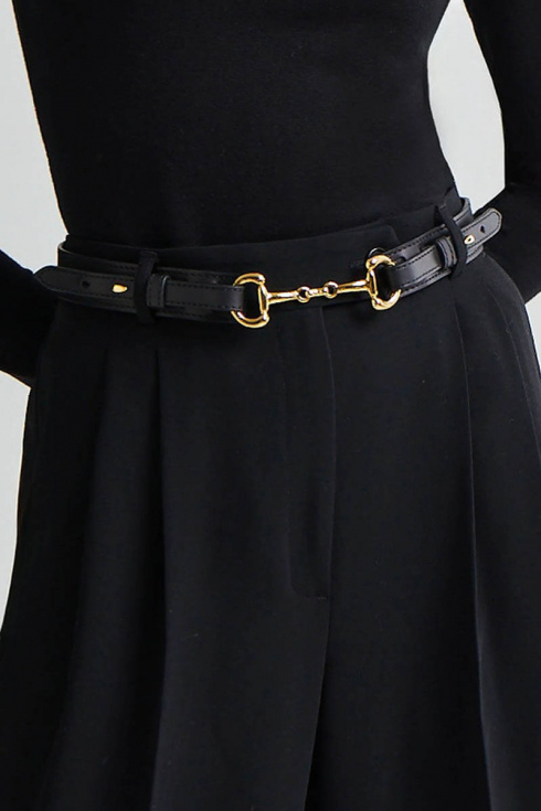 Luxurious belt from Andiata – a timeless classic you’ll love styling with your wardrobe. Leather belt with a horsebit buckle in gold-toned, nickel-free metal. Handmade in Italy.