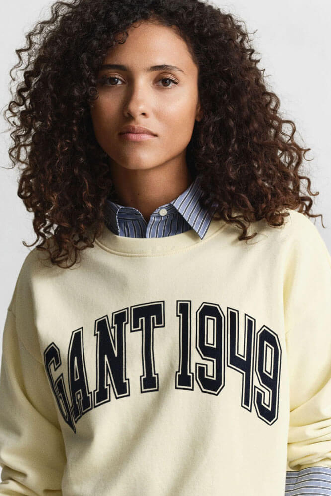 Sweatshirt in soft cotton that will quickly become your new everyday favorite. It features a ribbed collar and cuffs. The sweatshirt is adorned with a Gant 1949 logo printed on the chest. The garment has a relaxed fit. For a more fitted look, we recommend choosing a smaller size.