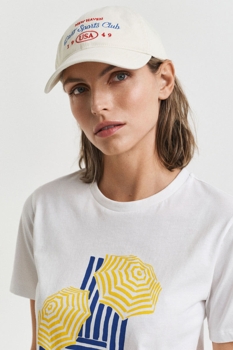 Graphic Cotton Twill Cap, Cream