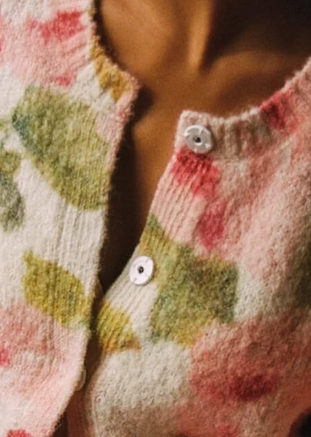 The Hairy Knit Jacket is made of ByTimos very soft and fuzzy blend of yarn.The jacket has a cropped, straight silhouette, long sleeves, and a round neckline. The cuffs, neckline and hemline features beautiful rib details. The jacket closes in the front with hidden press buttons and has detachable shoulderpads.