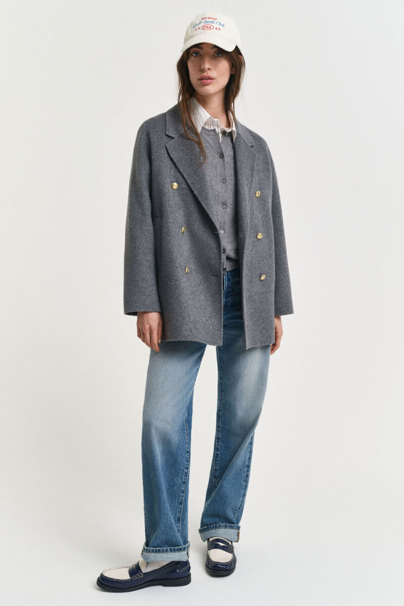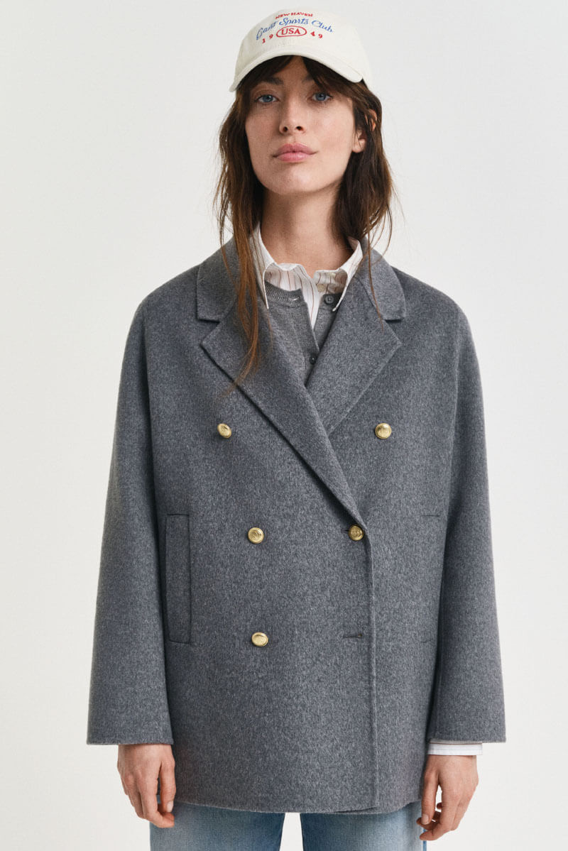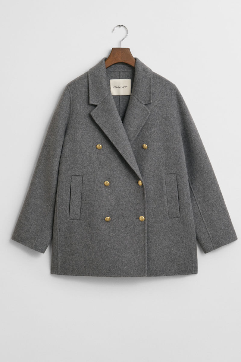 Double-breasted wool jacket with perfect shoulders and gold buttons – like a mix of suit and outerwear. Wear with a slim midi skirt, ribbed sweater and suede loafers. A stylish autumn jacket for those who love classic fashion with a modern edge.Double faced jacket in a soft woolblend with double breasted, pockets at the sides, collar and relaxed fit from Gant.