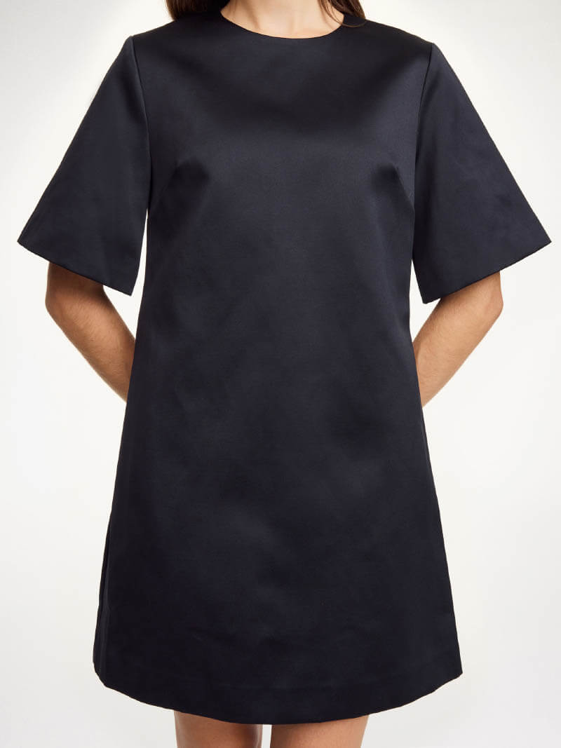 A versatile dress that can easily be dressed up or down and worn year-round. The dress features a straight silhouette in a heavier fabric that creates an elegant drape. The neutral colour makes it easy to pair with your existing wardrobe.