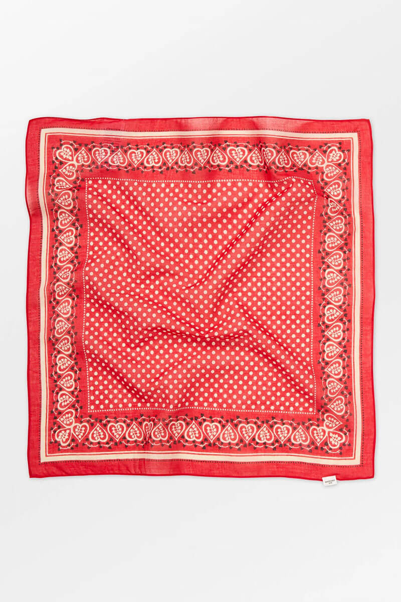 The Hearty Cotta Scarf, designed by BeckSöndergaard,is a stylish square scarf made from 100% cotton. Measuring 55 x 55 cm, it’s perfect for adding an elegant touch to your outfit. Featuring a sophisticated pattern with borders and delicate details, it creates a feminine look. Wear it around your neck, as a belt, or as a bag accessory for a modern touch.