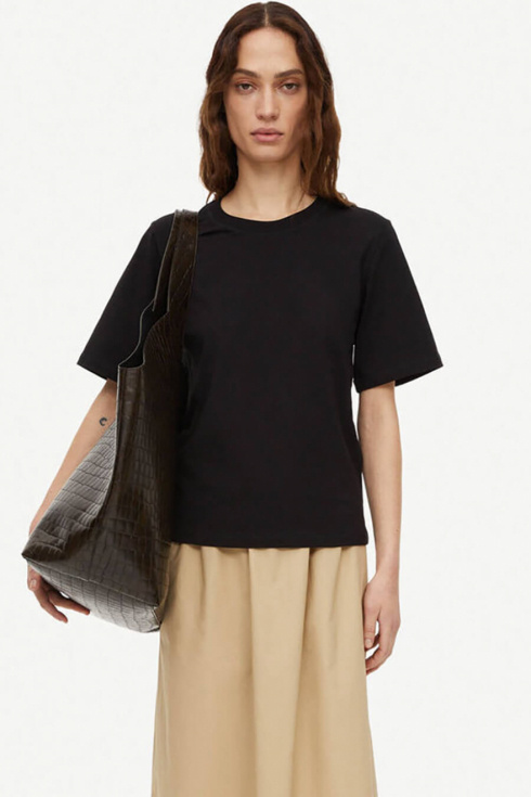 The simply shaped Hedil t-shirt from By Malene Birger is a versatile addition to any transitional wardrobe. The minimalist design is shaped to a loose-fitting silhouette with a round neckline that’s ideal for layering. Let yours add casual allure to tailored trousers and knit skirts.