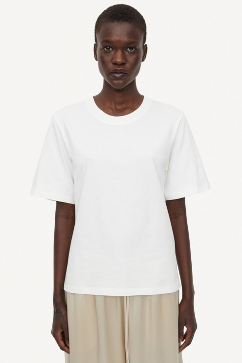 T-shirt in organic cotton with minimalist design, loose fit, round neckline and short sleeves from By Malene Birger.- 100% Organic Cotton