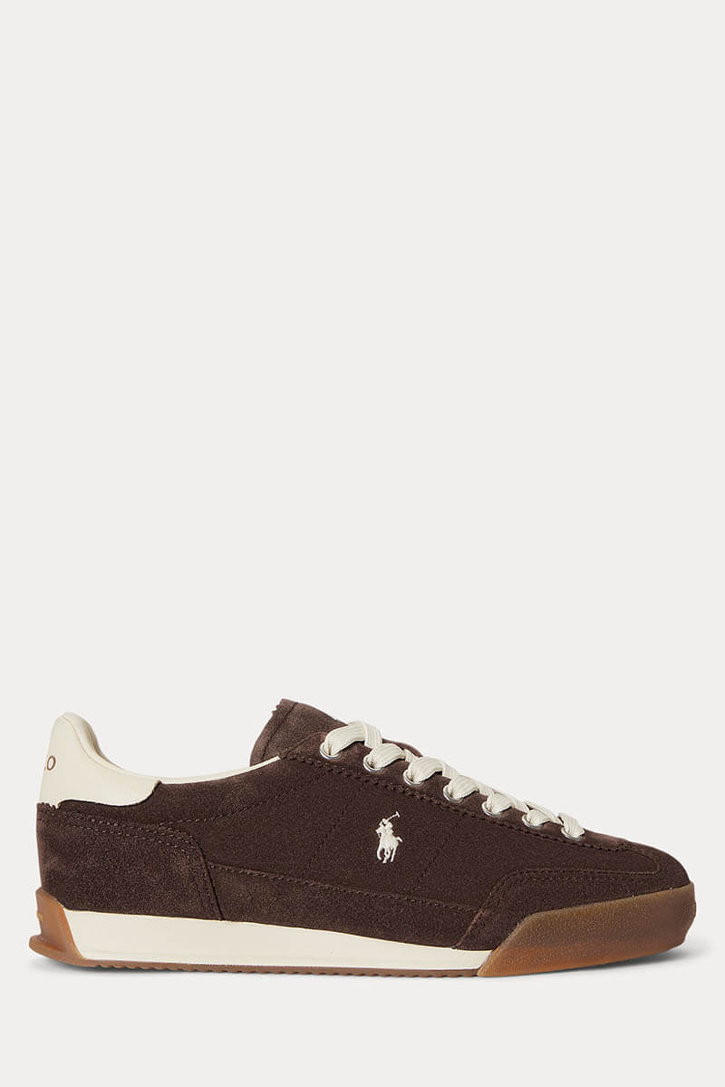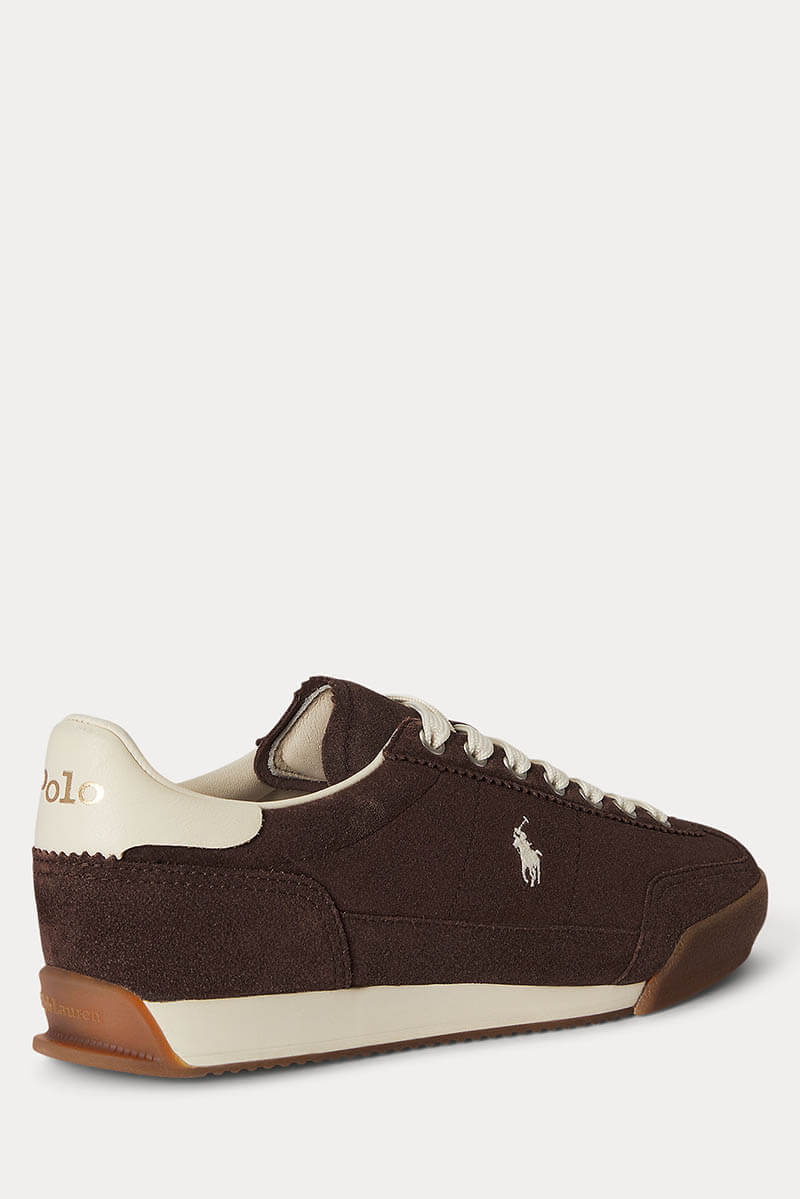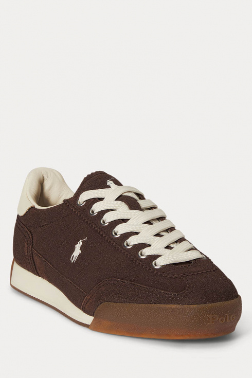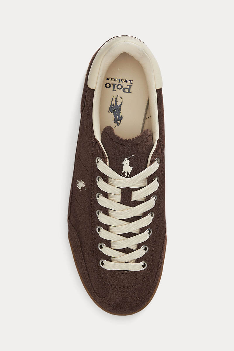 Sneaker with a rounded toe, lace-up front, padded foam insole, EVA midsole, and treaded rubber outsole from Polo Ralph Lauren.- True to size