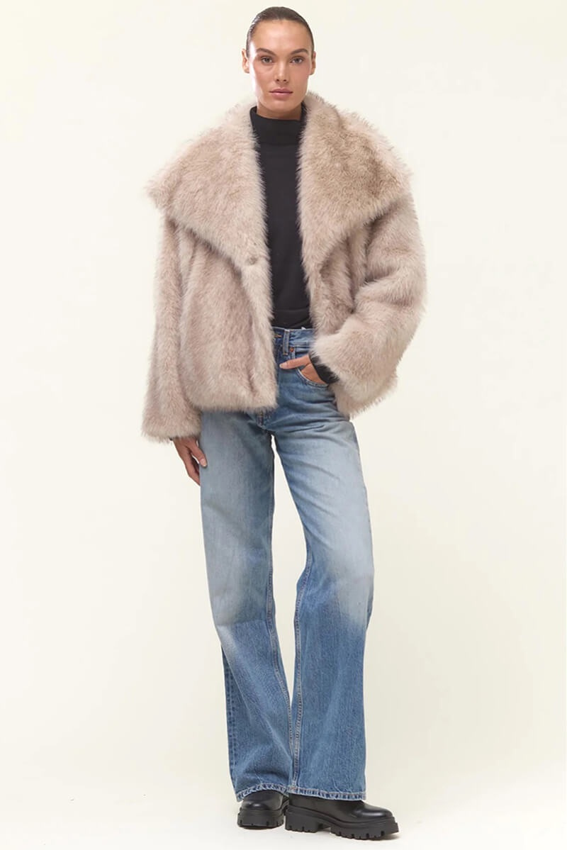 A short and sleek faux fur jacket that offers an elegant and modern look. Easy to wear for both everyday outfits and more festive occasions, it pairs perfectly with everything from knitwear to dresses.Short faux fur jacket with concealed press-button fastening from Hollies.