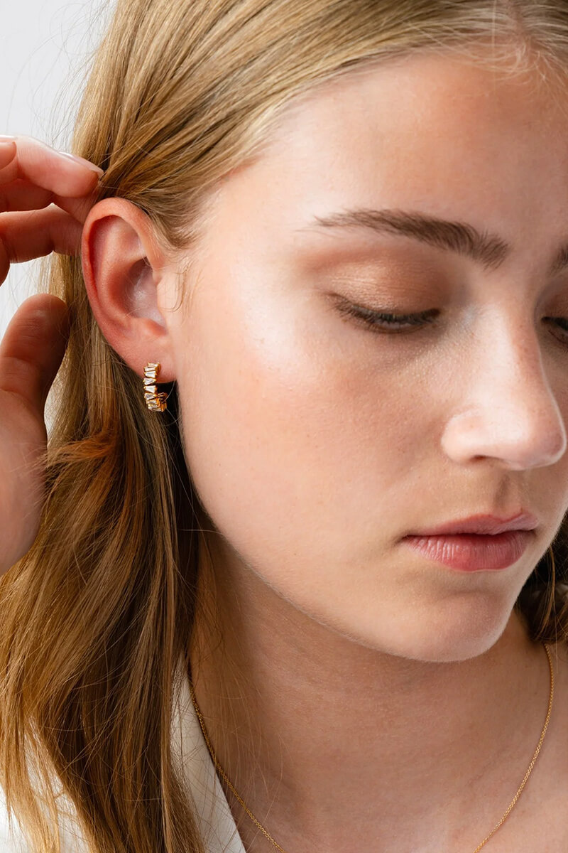 Introducing the Iggy Earrings — designed from Syater P to stand out. These earrings feature small, tapered baguette-cut cubic zirconias.The stones catch the light and add just the right amount of sparkle, making them perfect for both casual days and special nights out.