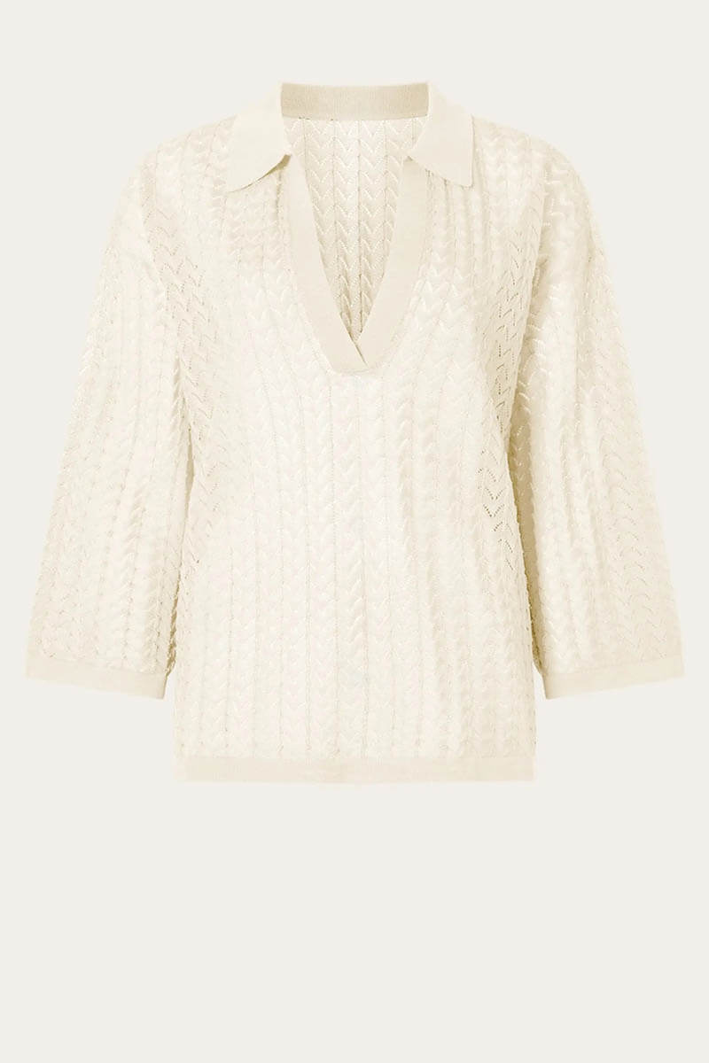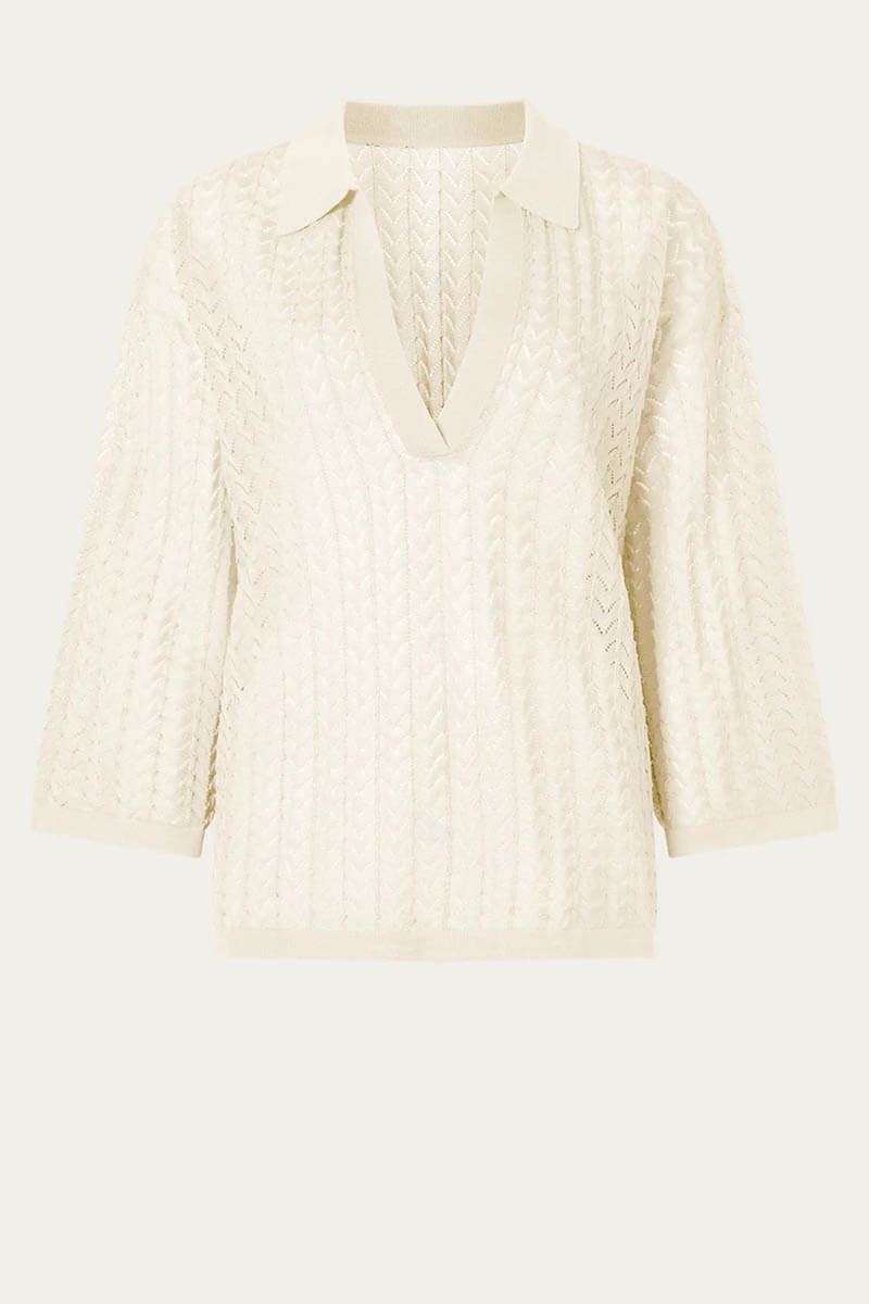Knitted sweater featuring a V-neckline, dropped shoulders, and ribbed trims from Malina.
