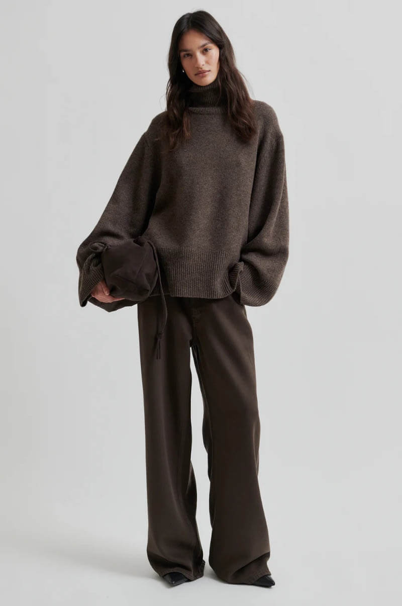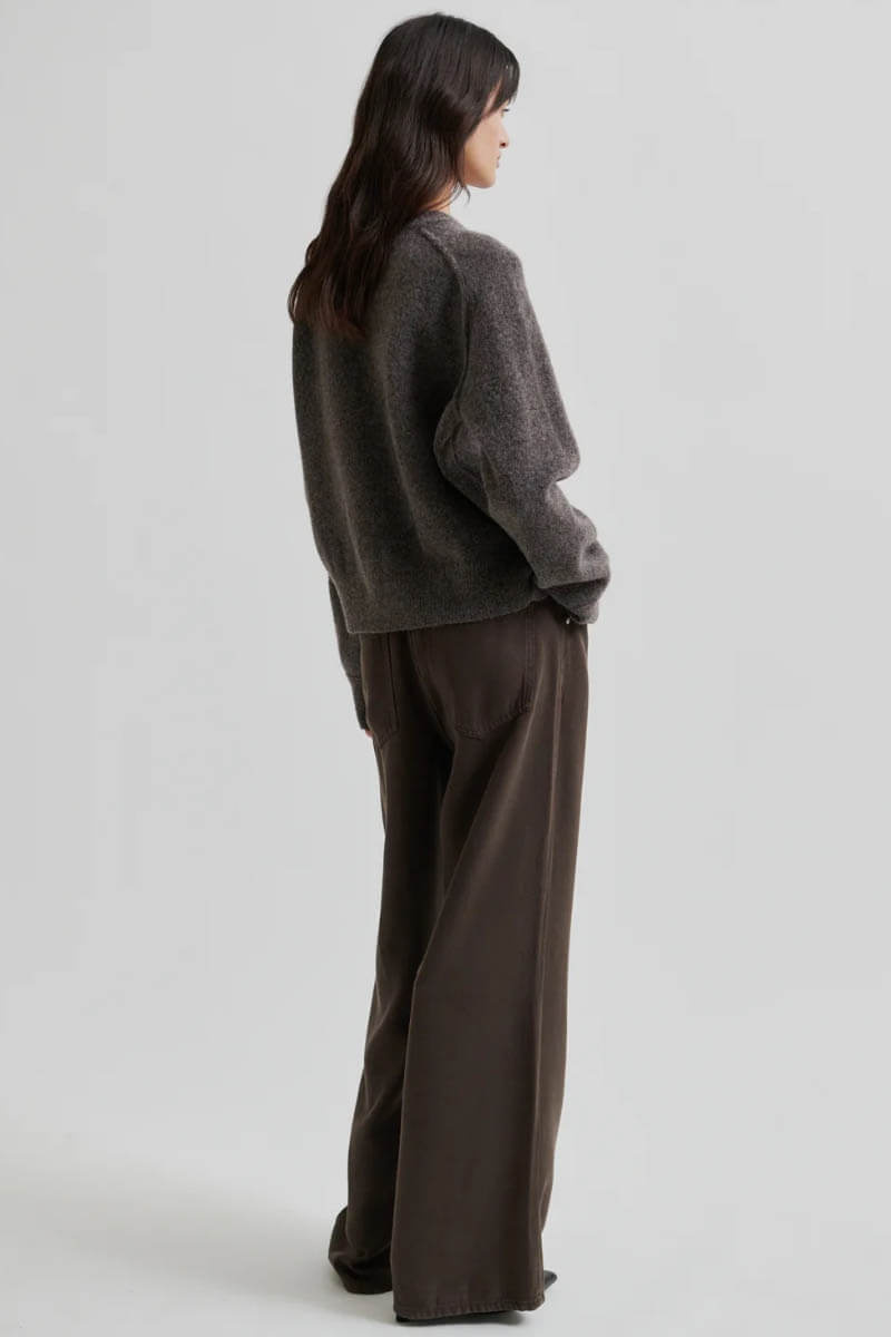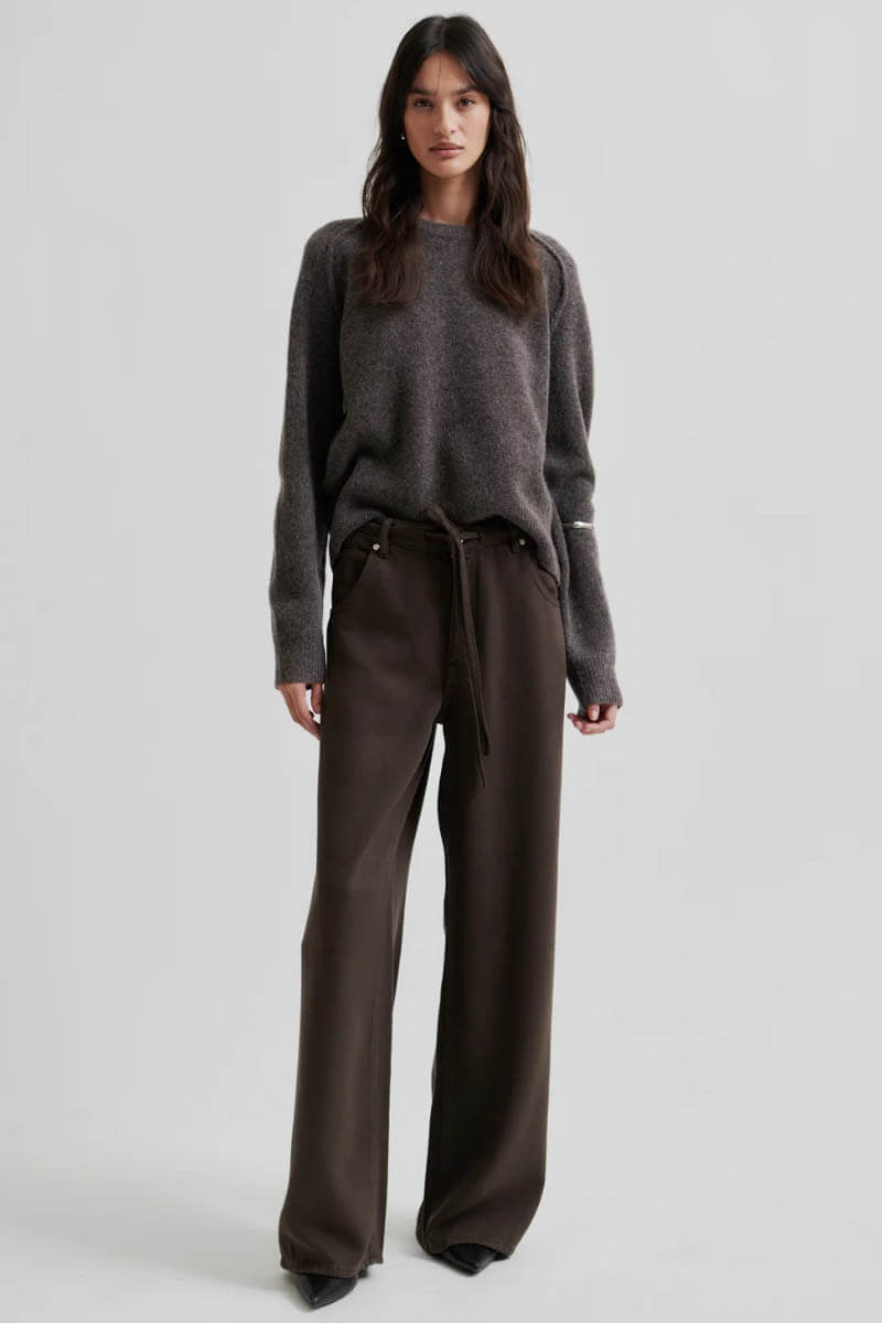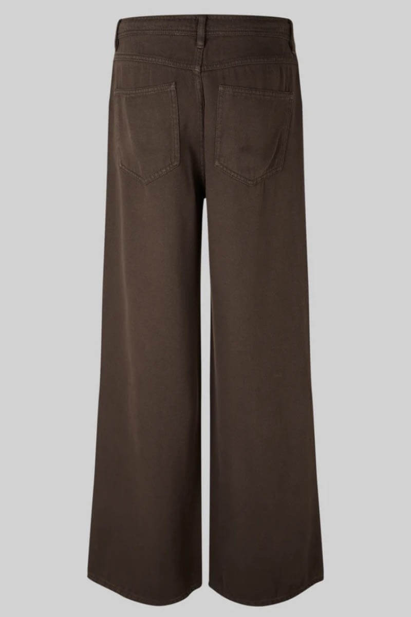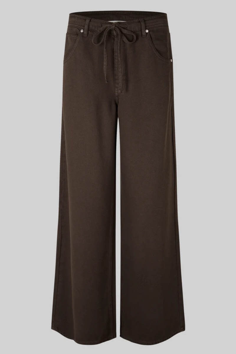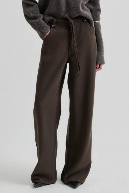 Trousers in soft, drapey lyocell with a concealed zip and button at the front, drawstring waist, five-pocket design and silver branded hardware from Second Female. Mid-rise fit with loose, straight legs for a modern and effortless silhouette.