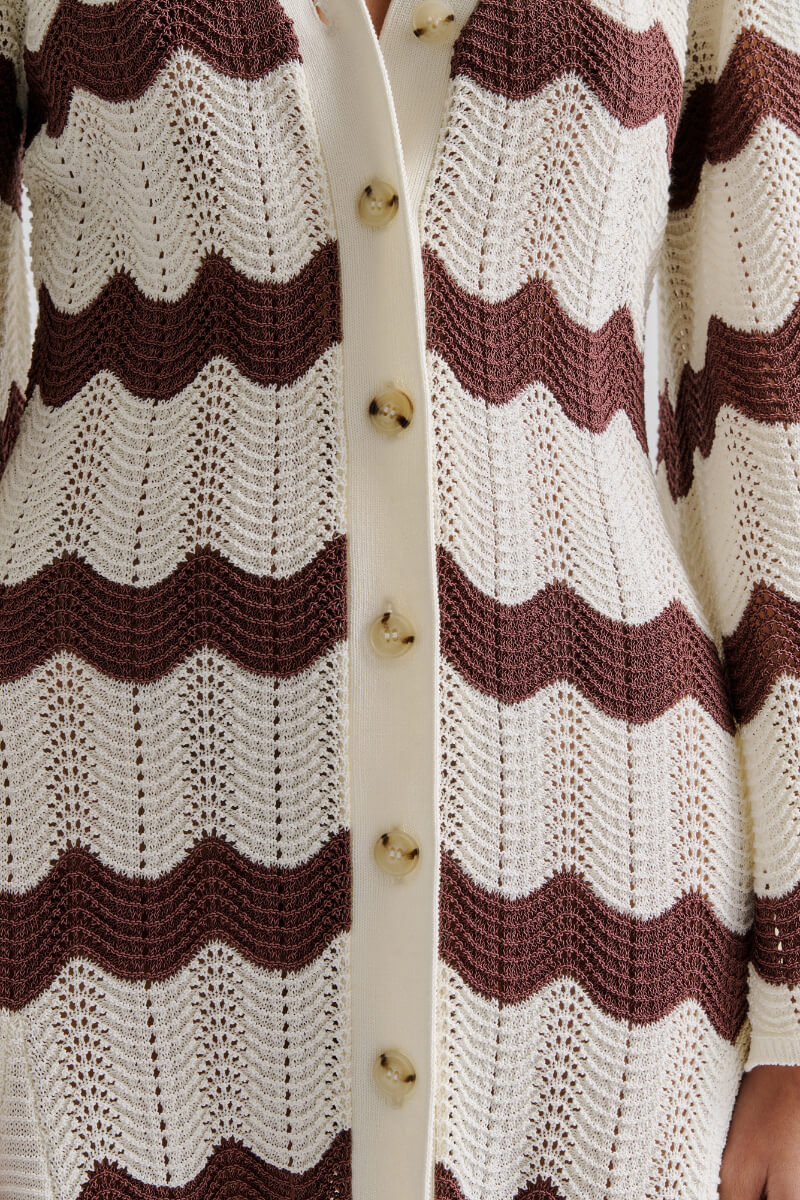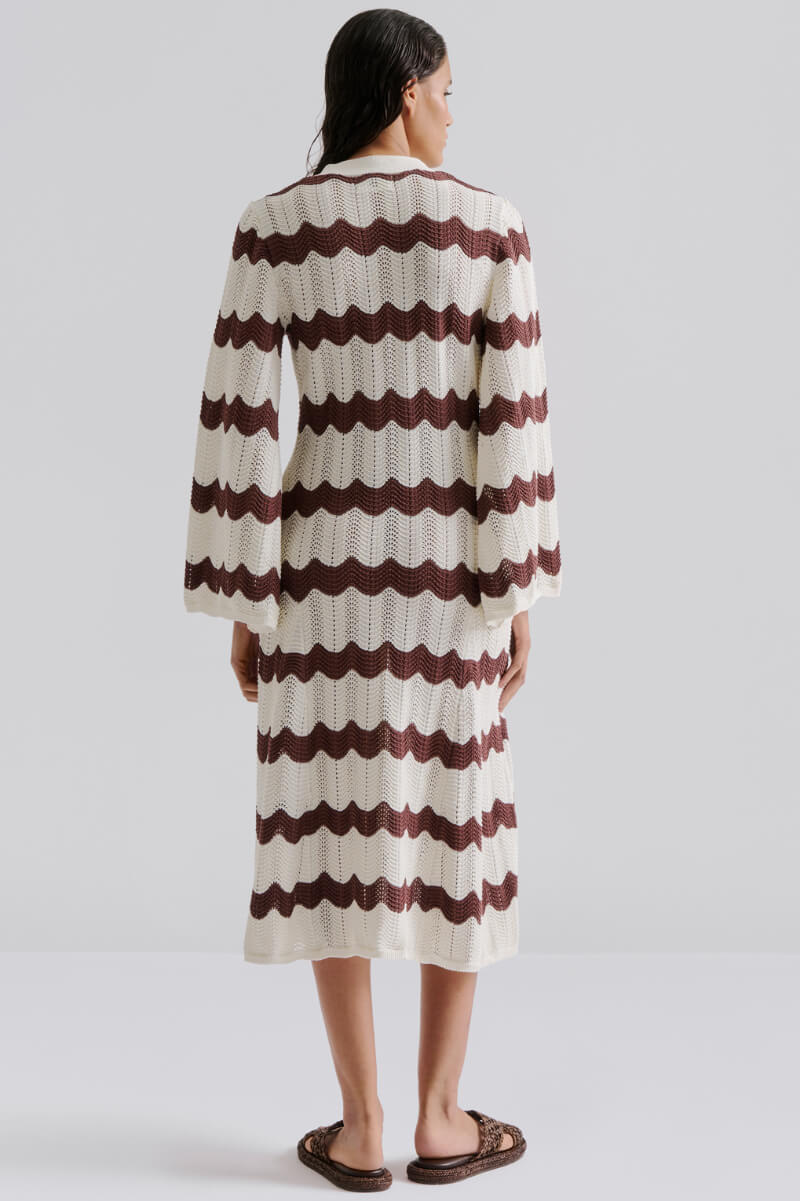 Isobel Wide Sleeve Knitted Midi Dress, Brown Stripe