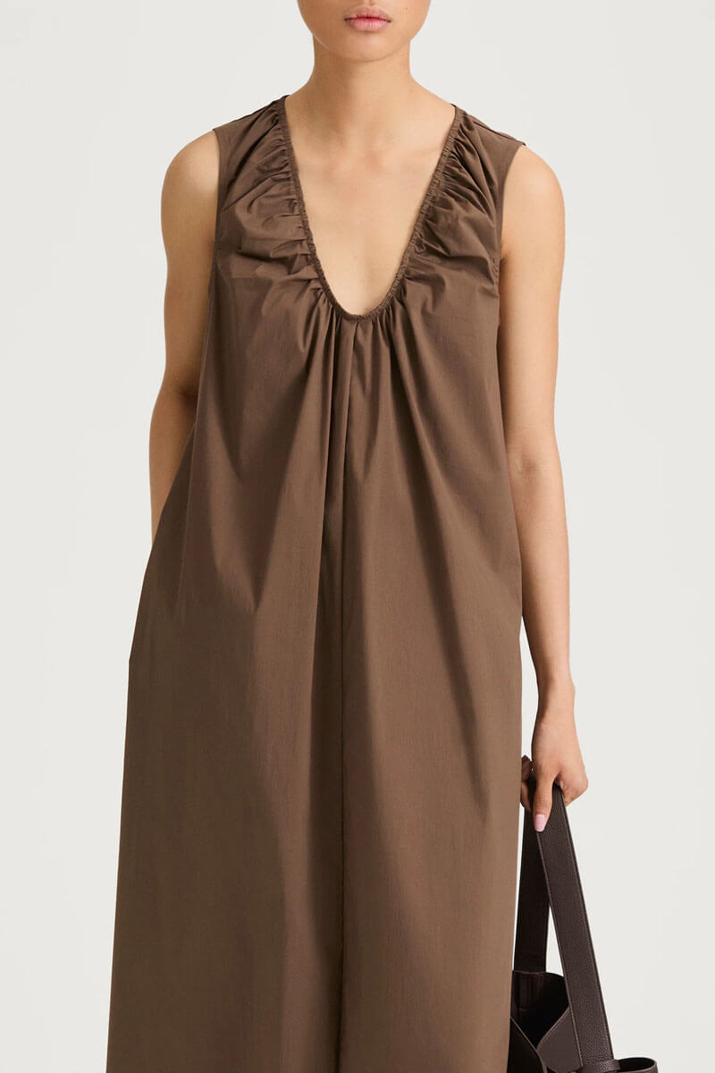 Perfect for summer dinner and party or just with flip-flop.Crafted from a soft cotton blend, Jaisie Dress features a U-neckline with gentle gathering, creating a graceful, flowing silhouette. With discreet side pockets and refined, subtle finishes, it embodies effortless sophistication and timeless elegance.